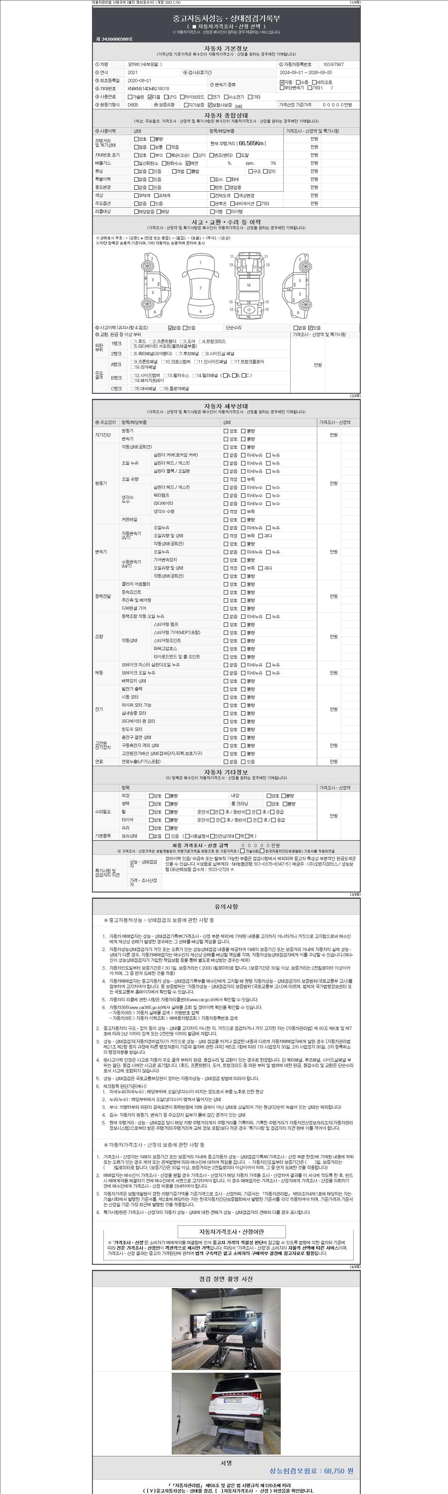 - 2. 차량 등록증이나 성능점검지 등을 상담자에게 요청및 확인하시고 사전에 미리 점검 하시기를 권유드립니다.