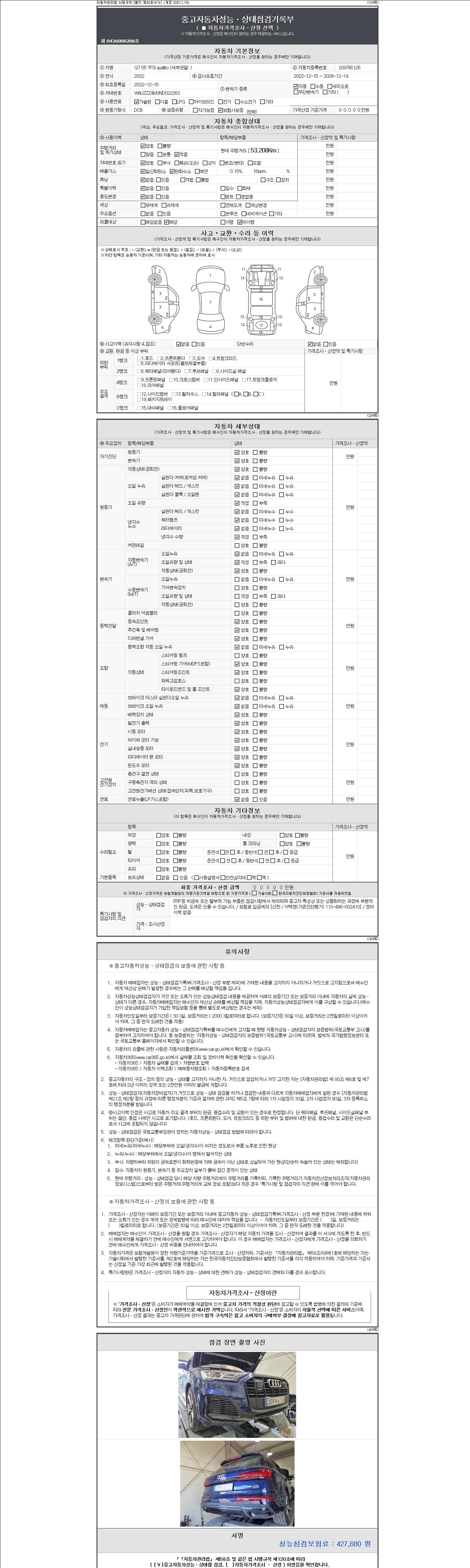 - 2. 차량 등록증이나 성능점검지 등을 상담자에게 요청및 확인하시고 사전에 미리 점검 하시기를 권유드립니다.