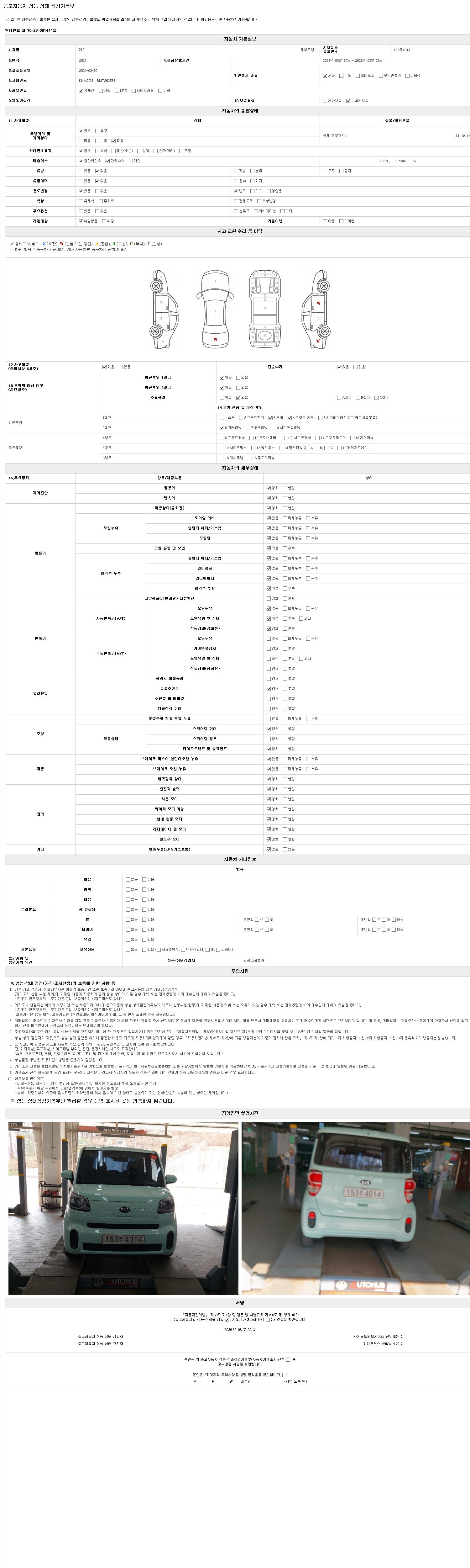 | 주행거리 | 44,134 km | 차량번호 | 153주4014 | 사고유무 | 성능기록부 참조 | 제시번호 | 제 2147483647 호 |