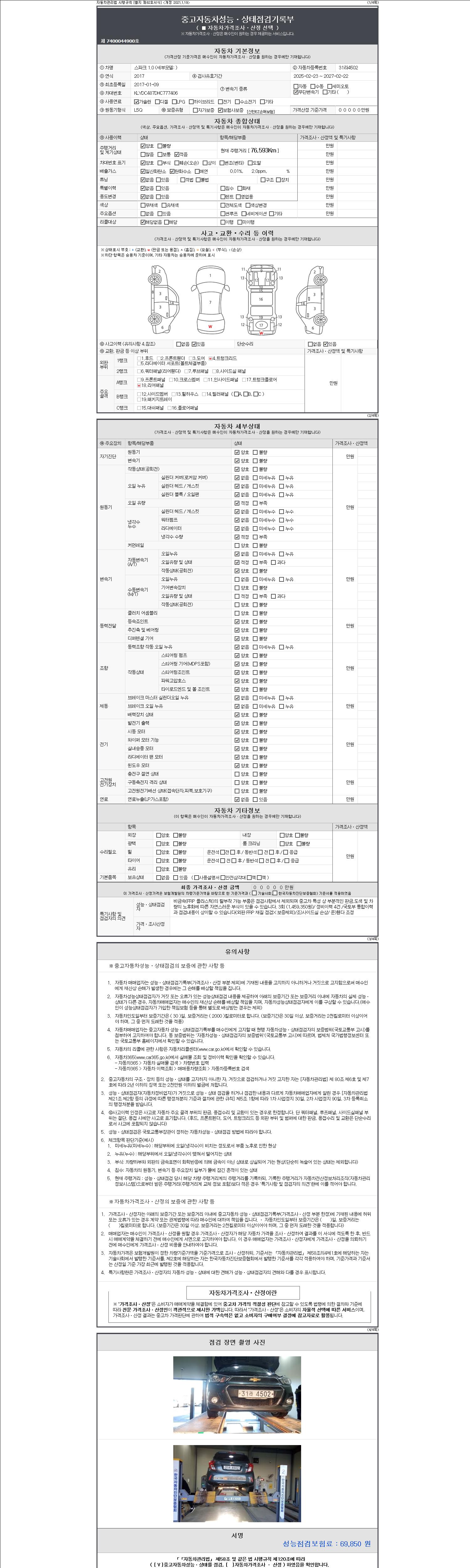 2. 차량 등록증이나 성능점검지 등을 상담자에게 요청및 확인하시고 사전에 미리 점검 하시기를 권유드립니다.