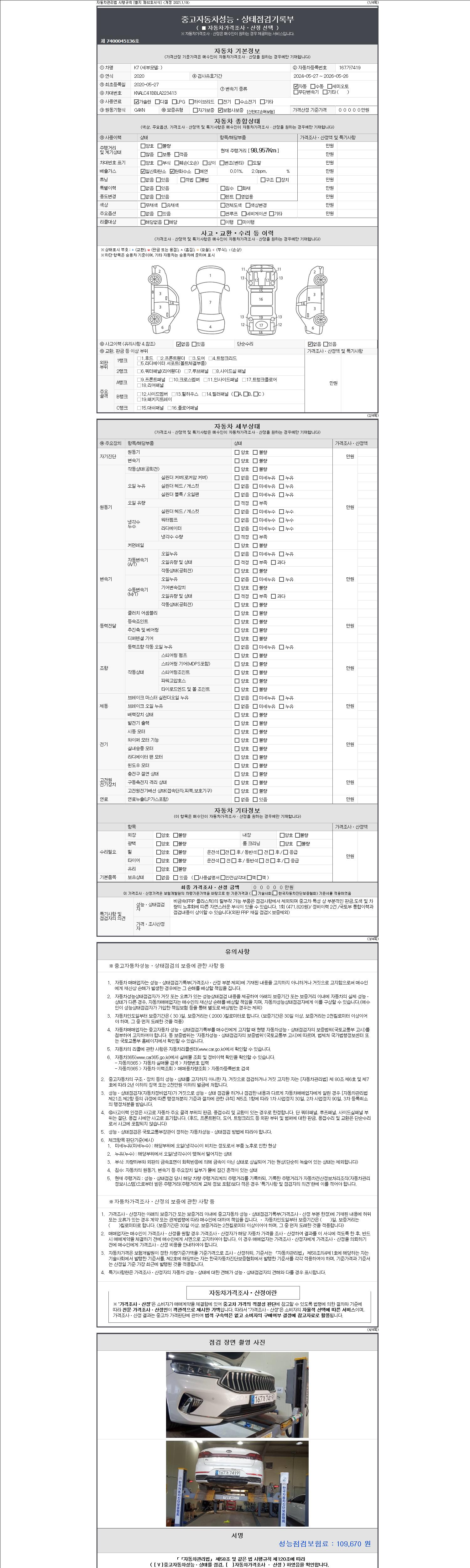 2. 차량 등록증이나 성능점검지 등을 상담자에게 요청및 확인하시고 사전에 미리 점검 하시기를 권유드립니다.