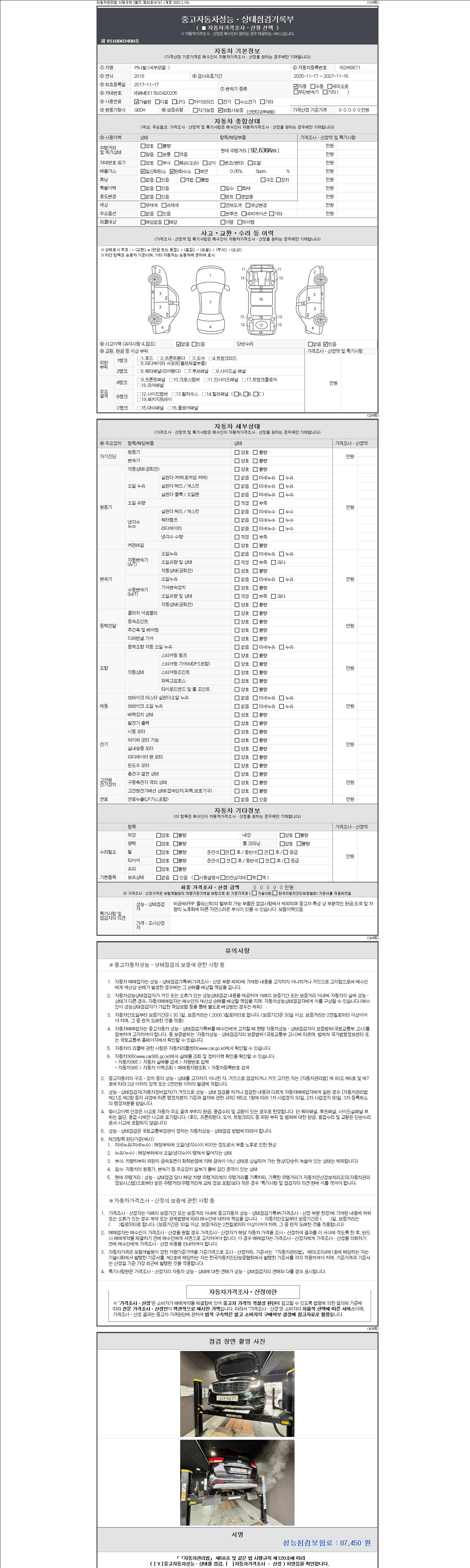 2. 차량 등록증이나 성능점검지 등을 상담자에게 요청및 확인하시고 사전에 미리 점검 하시기를 권유드립니다.