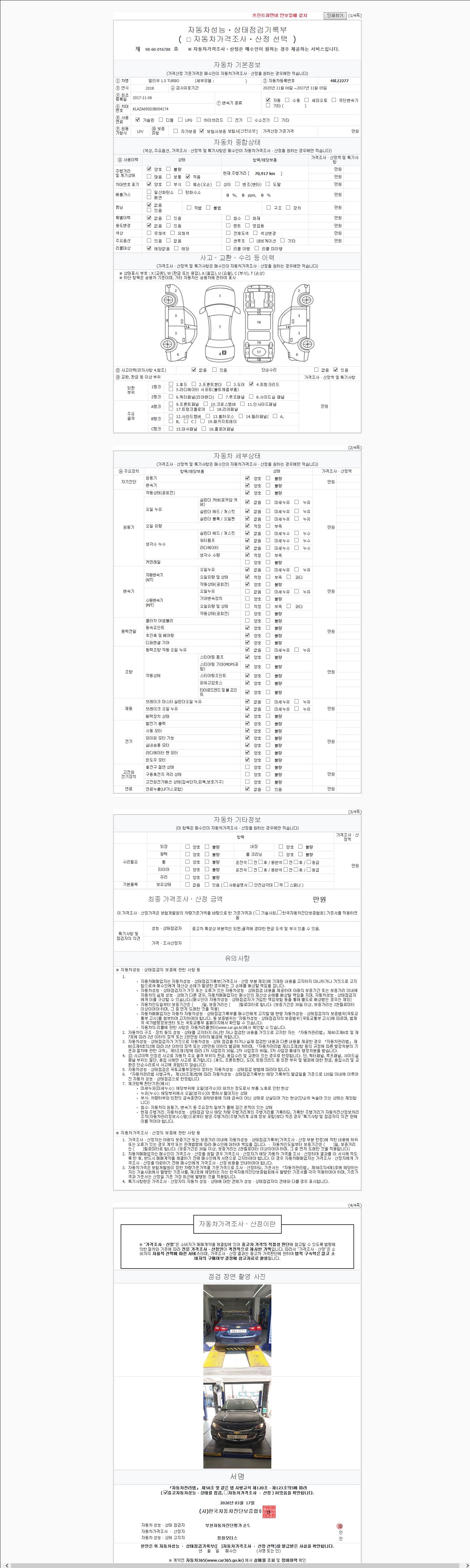 사고유무 성능기록부 참조 제시번호 제 2026044160 호