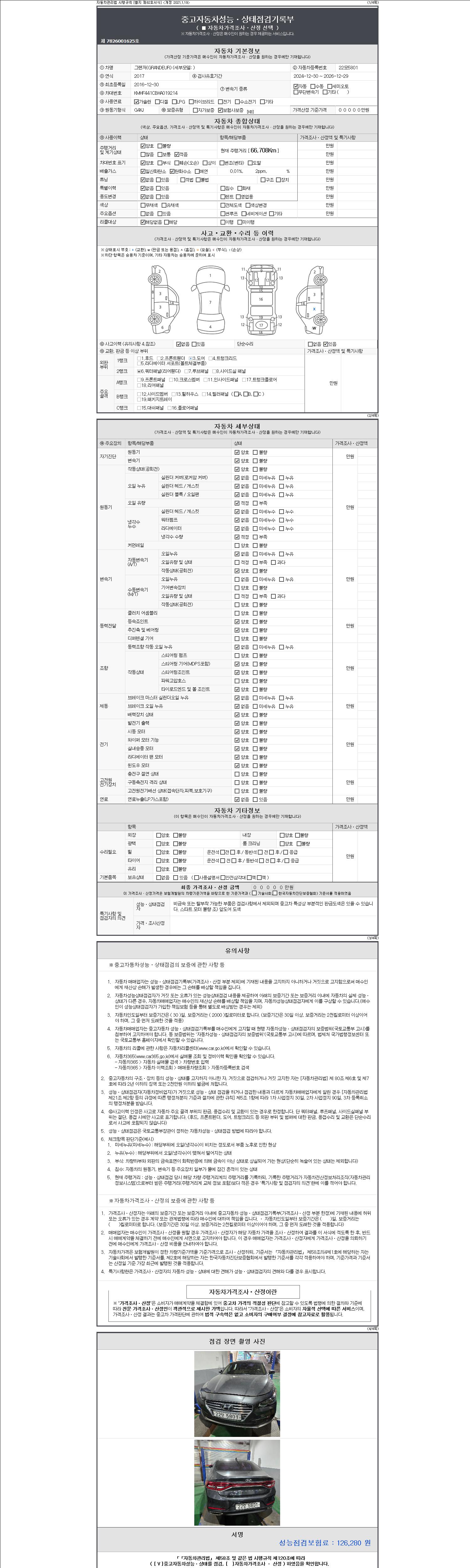 -중고자동차 매매업자를 통해 차량을 구입하실 경우 반드시 "중고자동차 성능, 상태점검 기록부"를 교뷰 받으셔야 하며, 매매업자는 반드시 의무 교부 하여야 압니다.