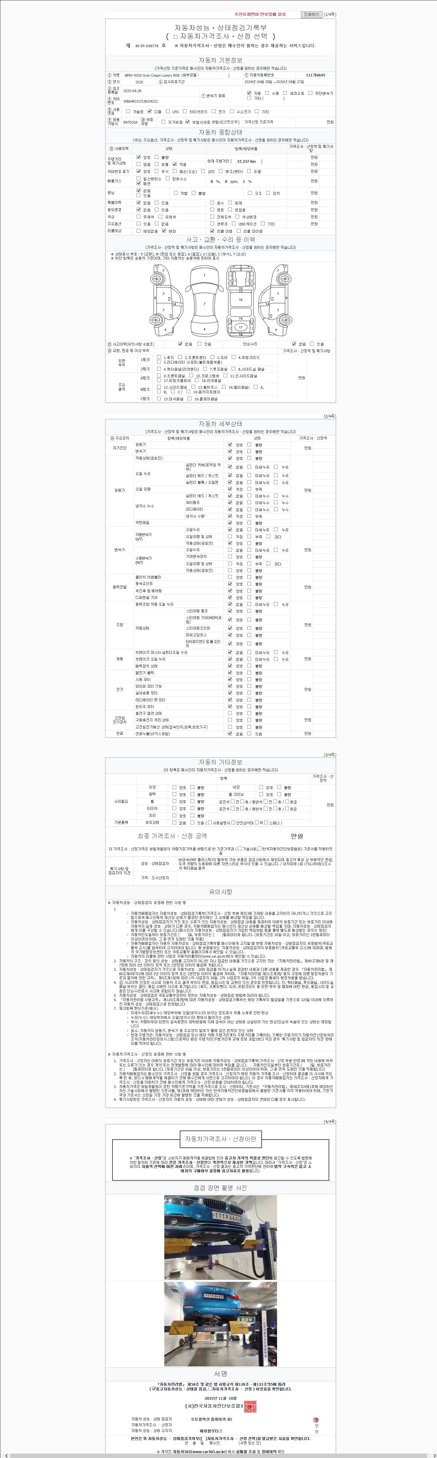 -중고자동차 매매업자를 통해 차량을 구입하실 경우 반드시 "중고자동차 성능, 상태점검 기록부"를 교뷰 받으셔야 하며, 매매업자는 반드시 의무 교부 하여야 압니다.