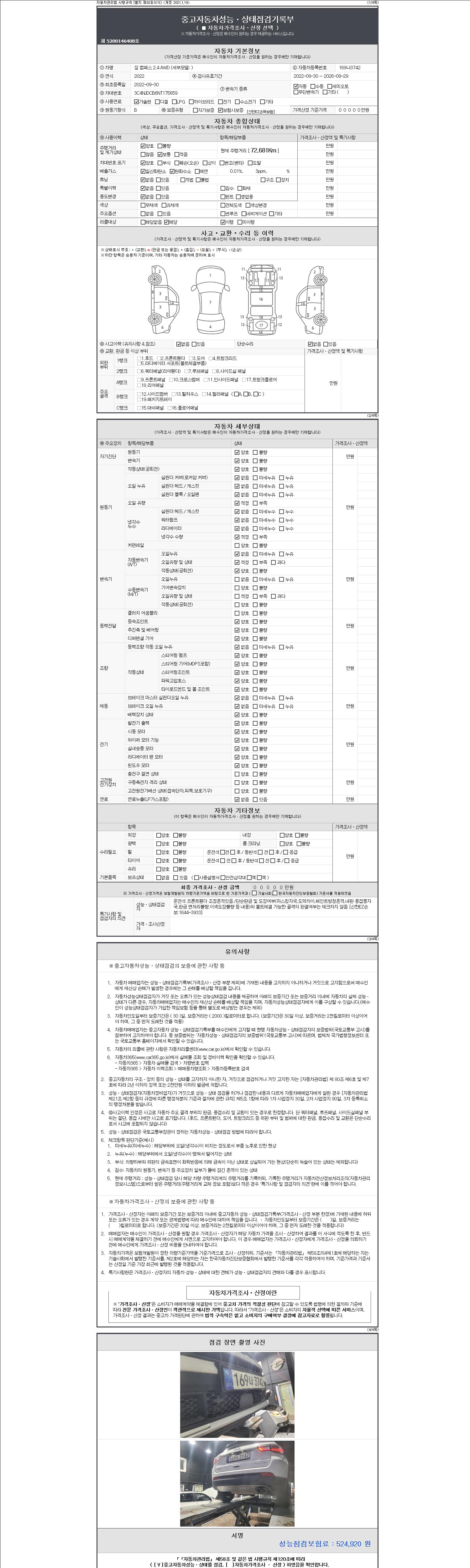 2. 차량 등록증이나 성능점검지 등을 상담자에게 요청및 확인하시고 사전에 미리 점검 하시기를 권유드립니다.