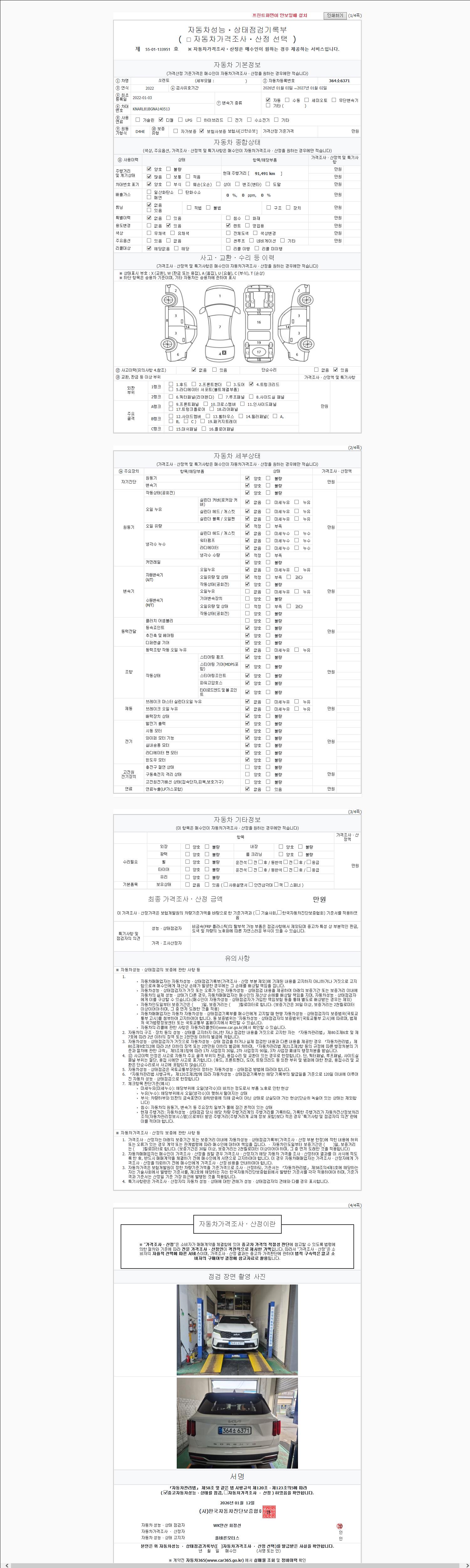 오토|경유|2022년 1월|91,491 km 364소6371| cc|흰색 |