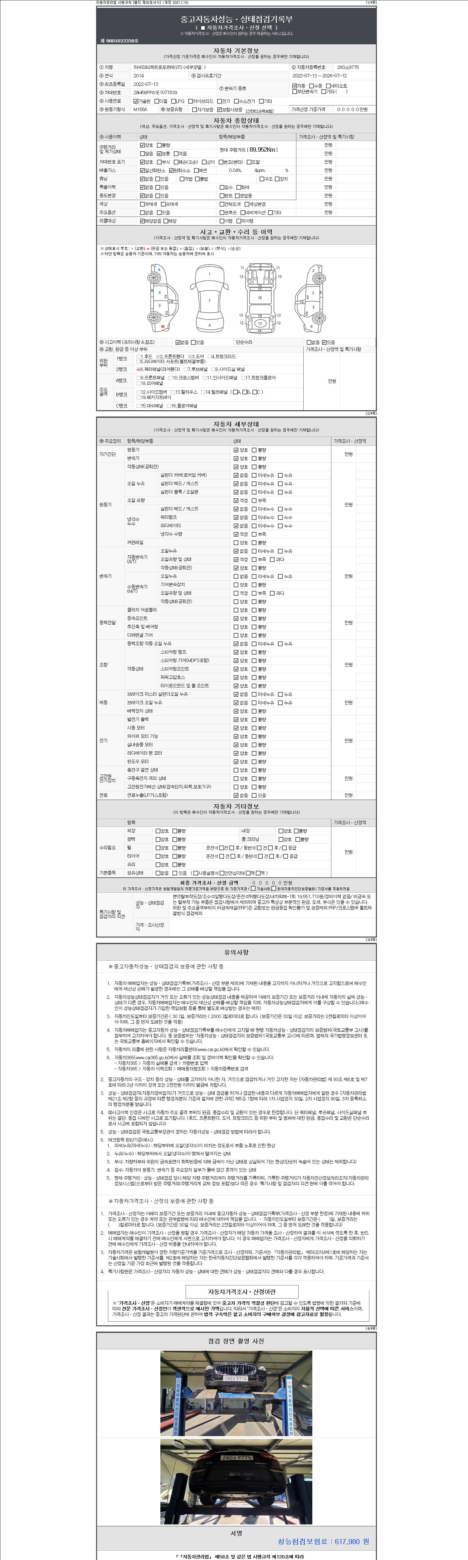 2. 차량 등록증이나 성능점검지 등을 상담자에게 요청및 확인하시고 사전에 미리 점검 하시기를 권유드립니다.