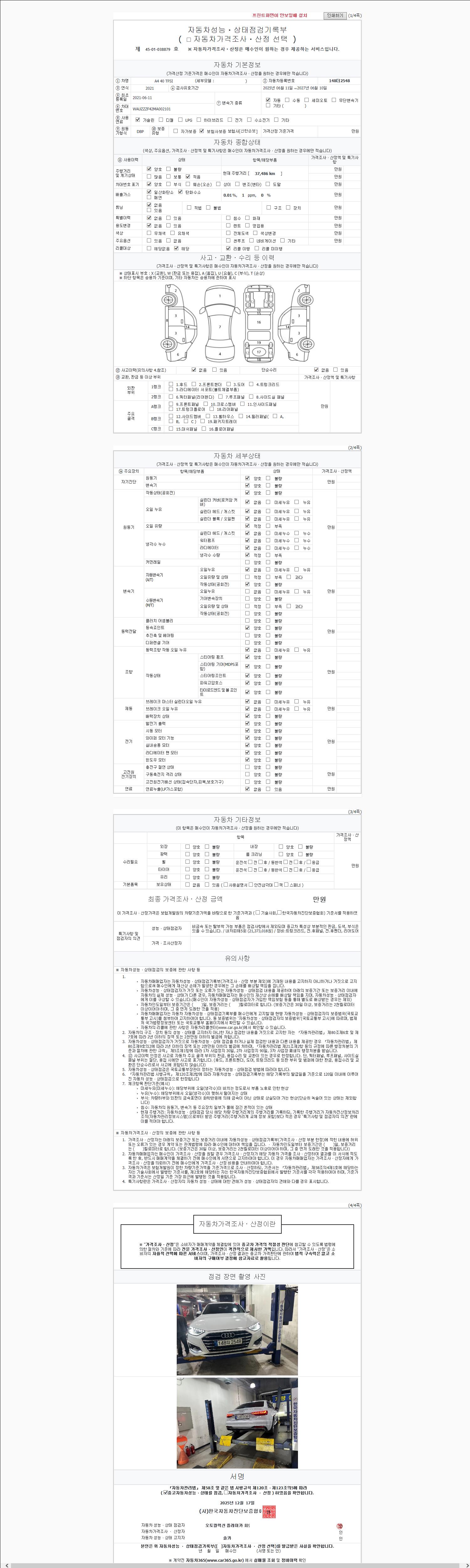 -중고자동차 매매업자를 통해 차량을 구입하실 경우 반드시 "중고자동차 성능, 상태점검 기록부"를 교뷰 받으셔야 하며, 매매업자는 반드시 의무 교부 하여야 압니다.