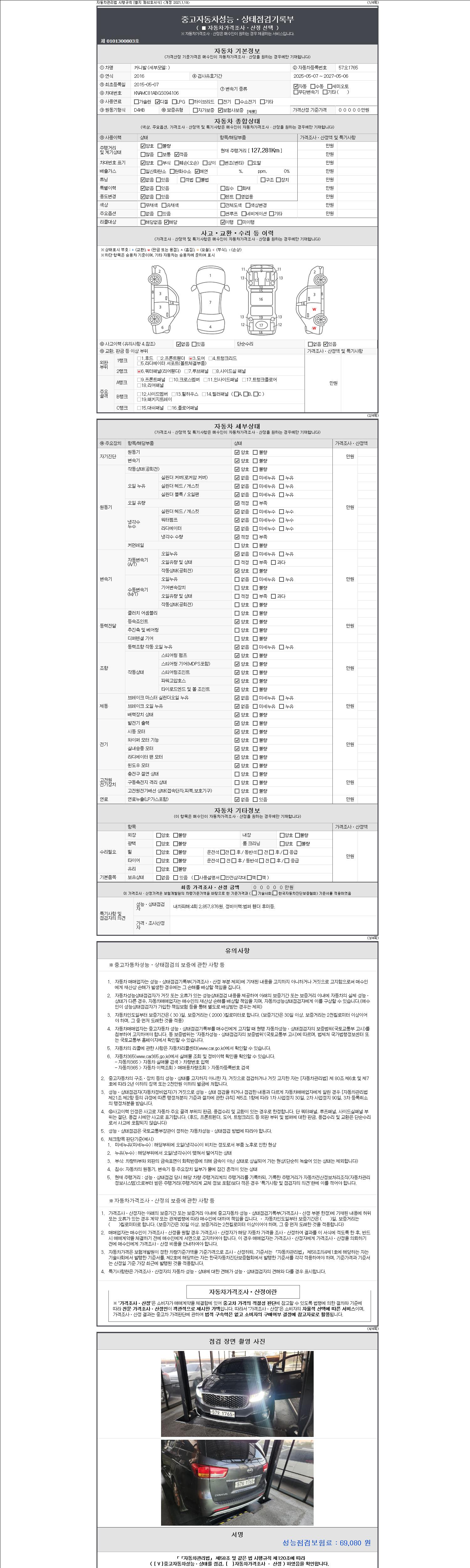 2. 차량 등록증이나 성능점검지 등을 상담자에게 요청및 확인하시고 사전에 미리 점검 하시기를 권유드립니다.