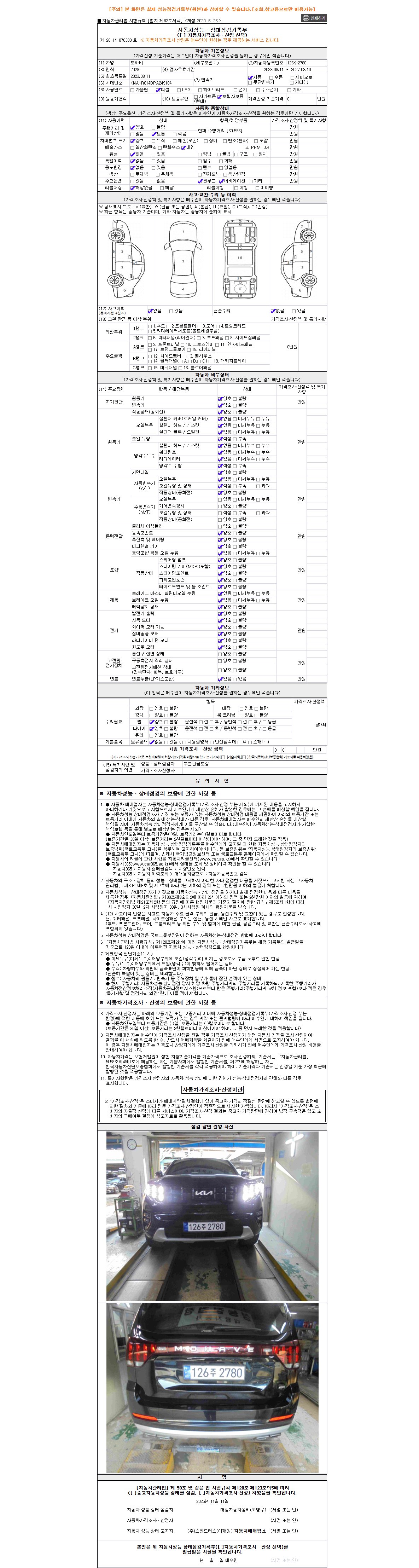 2. 차량 등록증이나 성능점검지 등을 상담자에게 요청및 확인하시고 사전에 미리 점검 하시기를 권유드립니다.