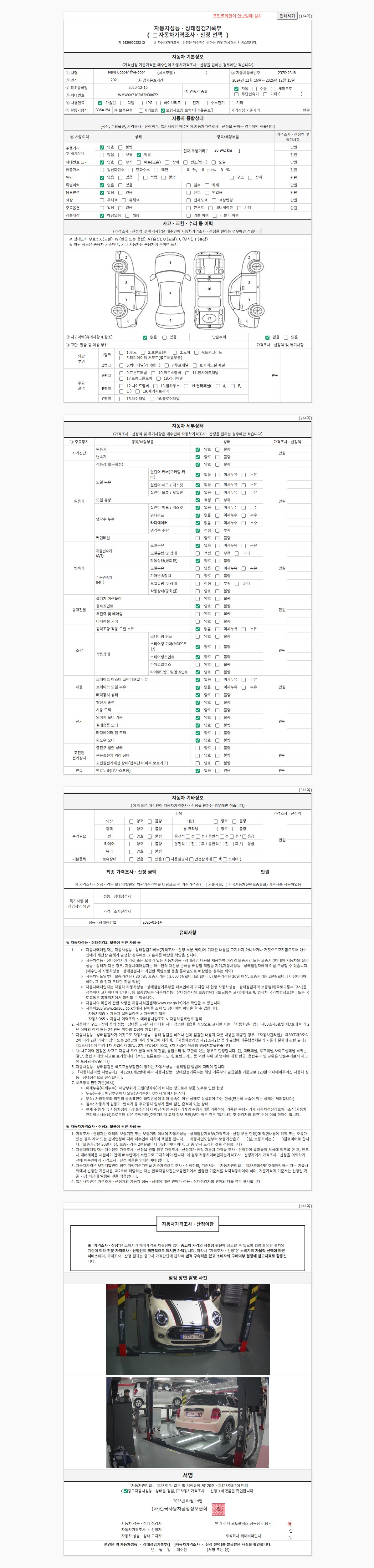 -중고자동차 매매업자를 통해 차량을 구입하실 경우 반드시 "중고자동차 성능, 상태점검 기록부"를 교뷰 받으셔야 하며, 매매업자는 반드시 의무 교부 하여야 압니다.