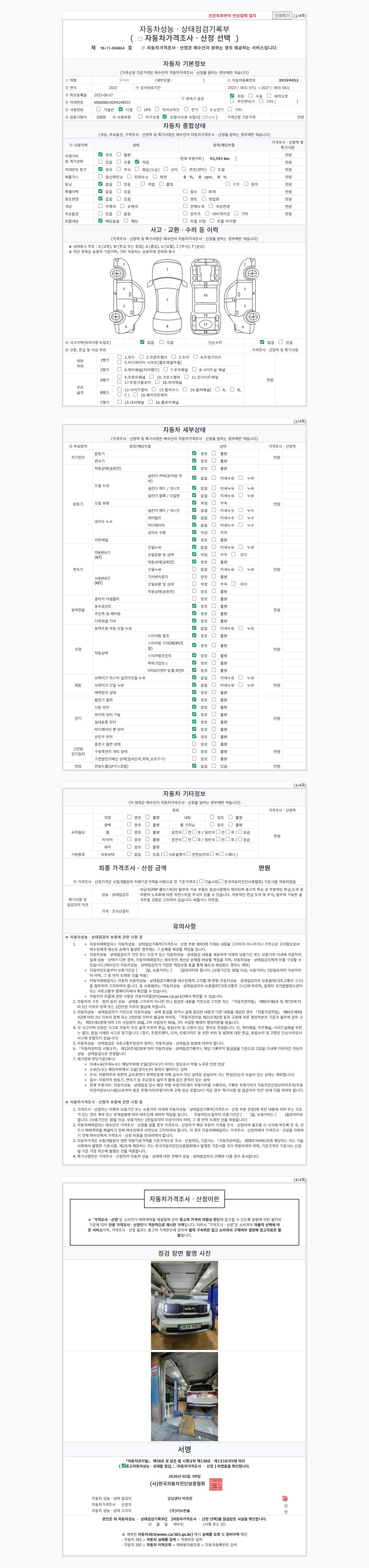 2. 차량 등록증이나 성능점검지 등을 상담자에게 요청및 확인하시고 사전에 미리 점검 하시기를 권유드립니다.