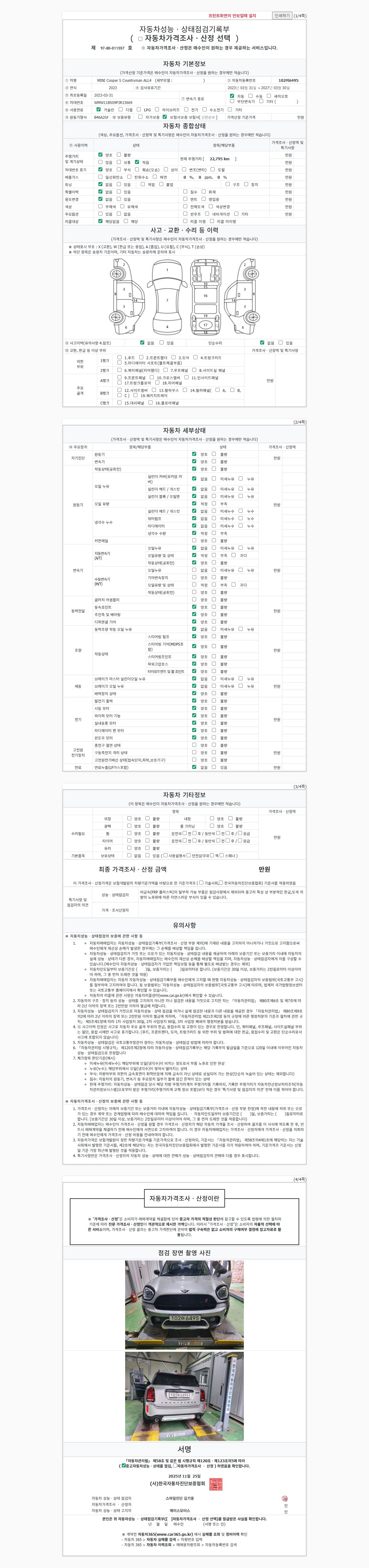 사고유무 성능기록부 참조 제시번호 제 2025039124 호