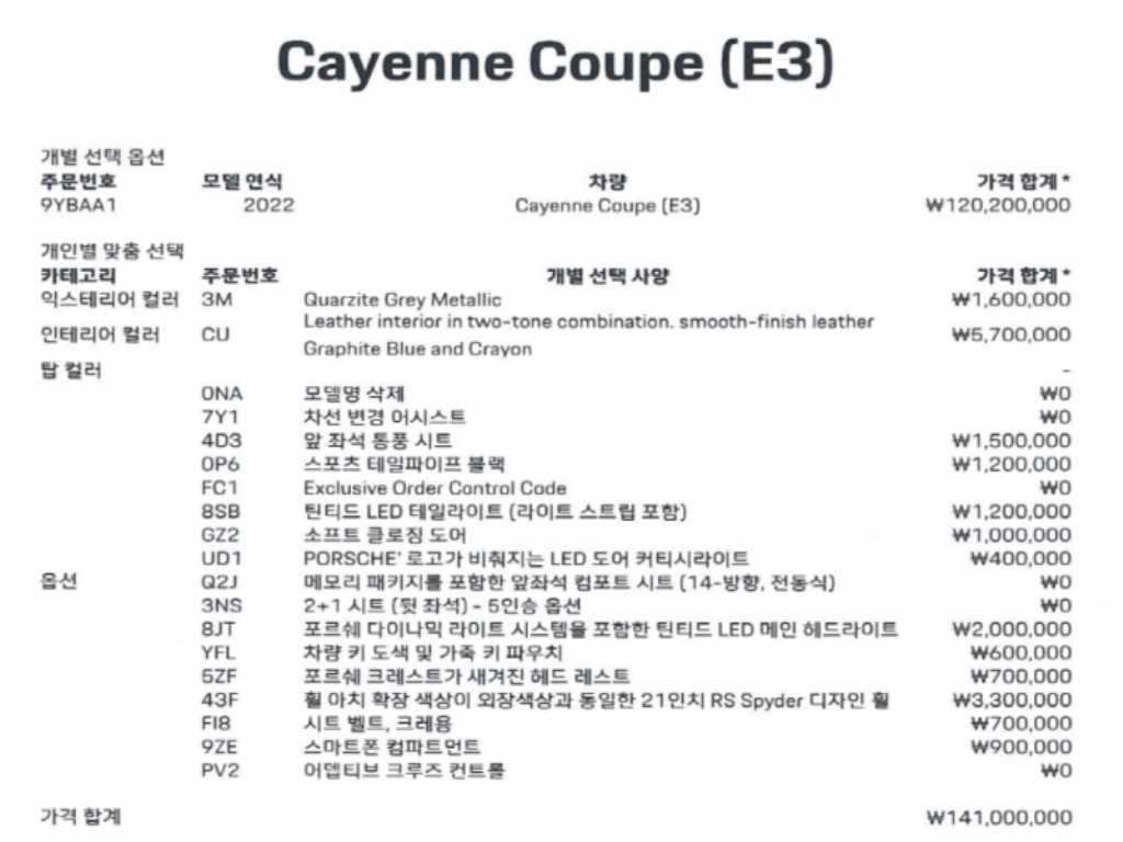 포르쉐 카이엔 카이엔(PO536) 3.0 쿠페 |