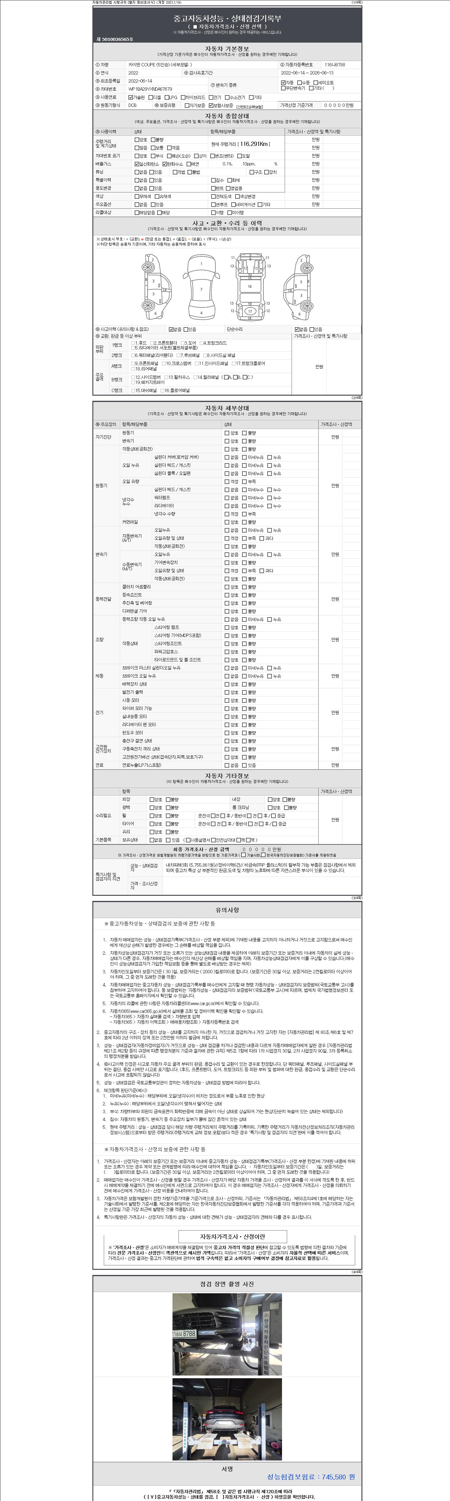 2. 차량 등록증이나 성능점검지 등을 상담자에게 요청및 확인하시고 사전에 미리 점검 하시기를 권유드립니다.