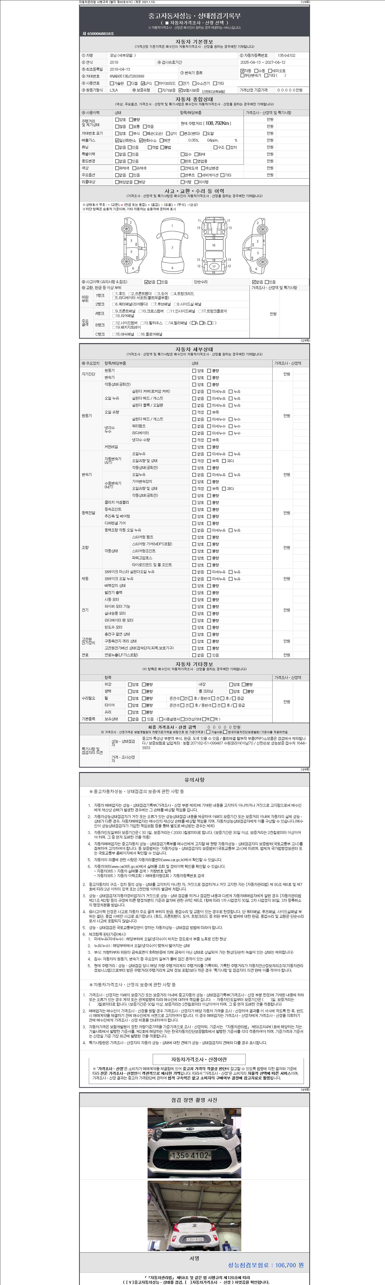 | 주행거리 | 108,792 km | 차량번호 | 135수4102 |