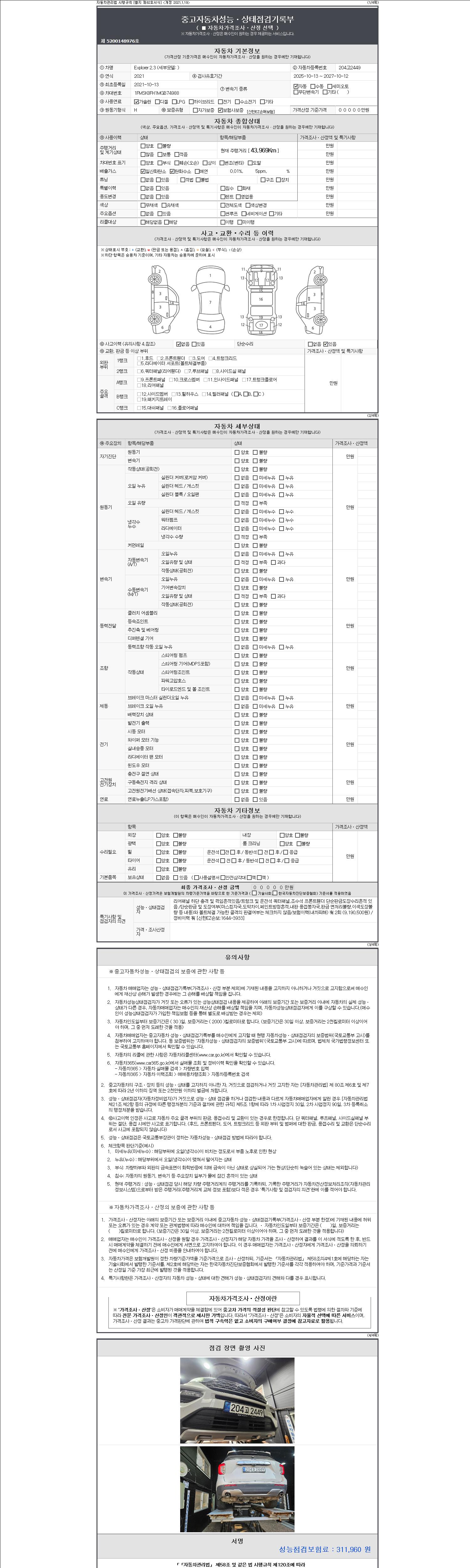 2. 차량 등록증이나 성능점검지 등을 상담자에게 요청및 확인하시고 사전에 미리 점검 하시기를 권유드립니다.