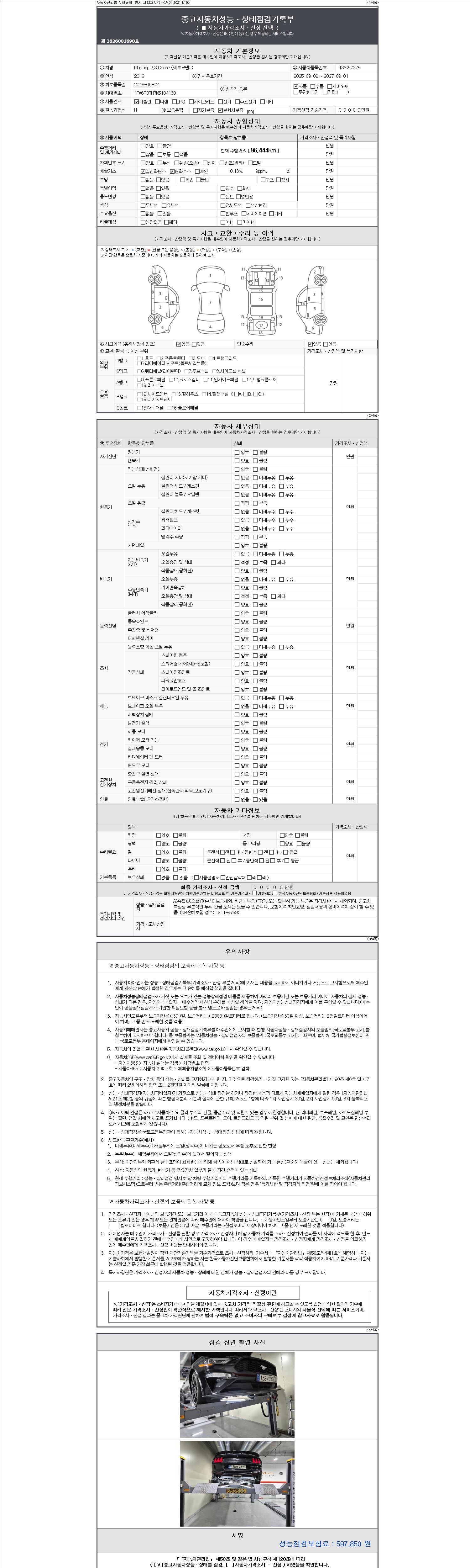 -중고자동차 매매업자를 통해 차량을 구입하실 경우 반드시 "중고자동차 성능, 상태점검 기록부"를 교뷰 받으셔야 하며, 매매업자는 반드시 의무 교부 하여야 압니다.