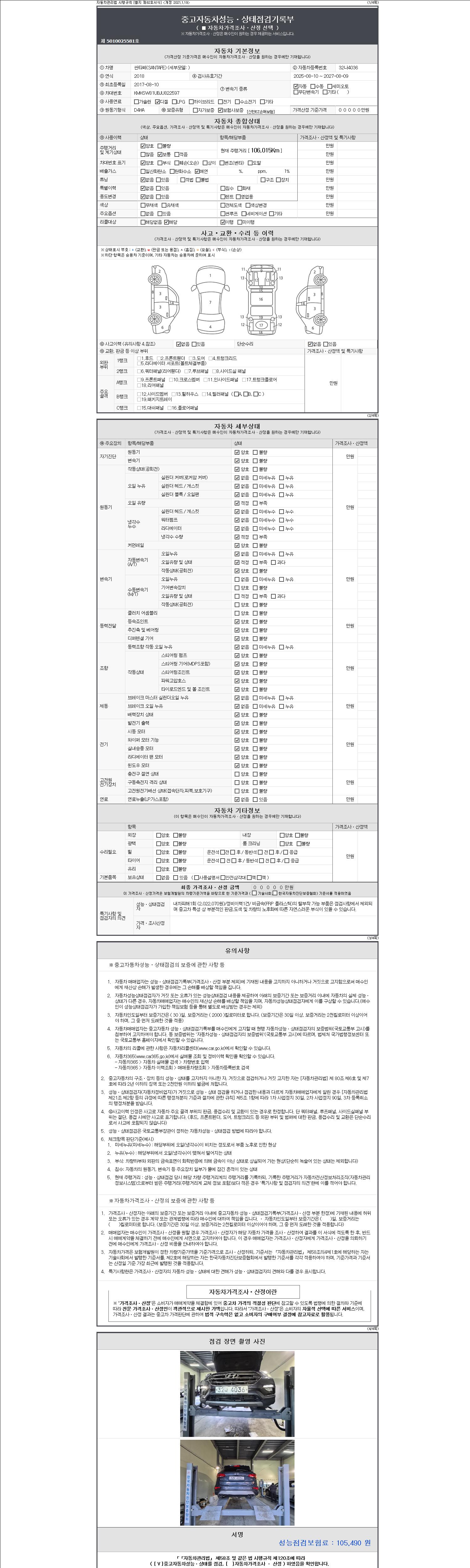 | 주행거리 | 106,015 km | 차량번호 | 32나4036 |