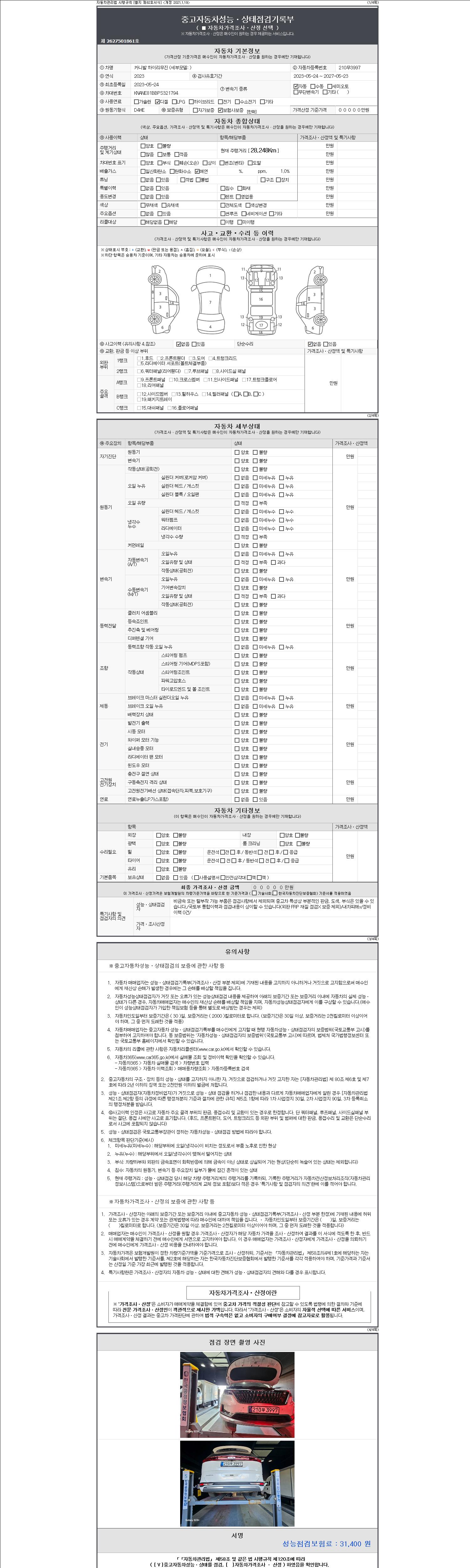 2. 차량 등록증이나 성능점검지 등을 상담자에게 요청및 확인하시고 사전에 미리 점검 하시기를 권유드립니다.