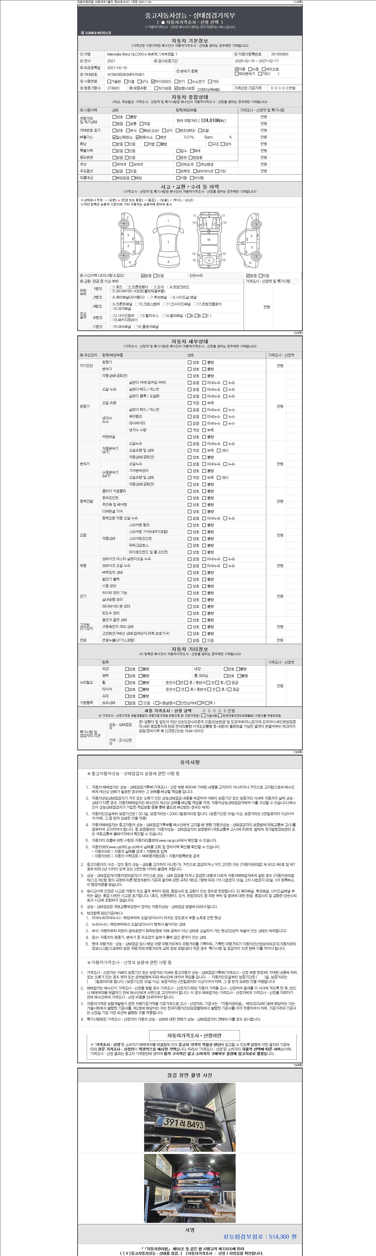 | 주행거리 | 124,810 km | 차량번호 | 391러8493 |