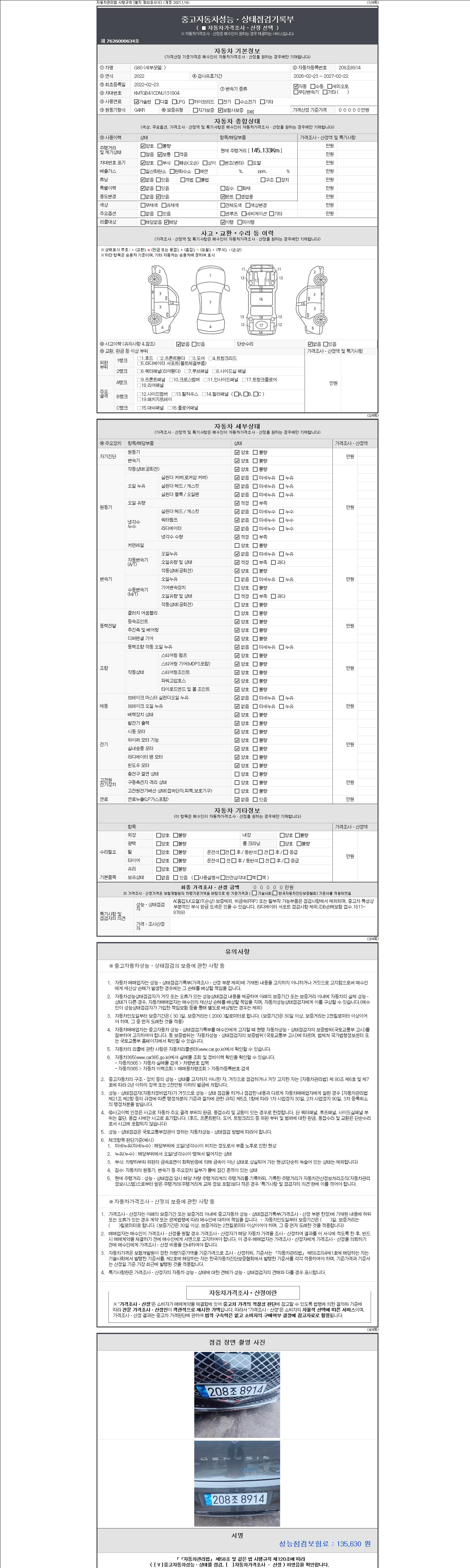 2. 차량 등록증이나 성능점검지 등을 상담자에게 요청및 확인하시고 사전에 미리 점검 하시기를 권유드립니다.