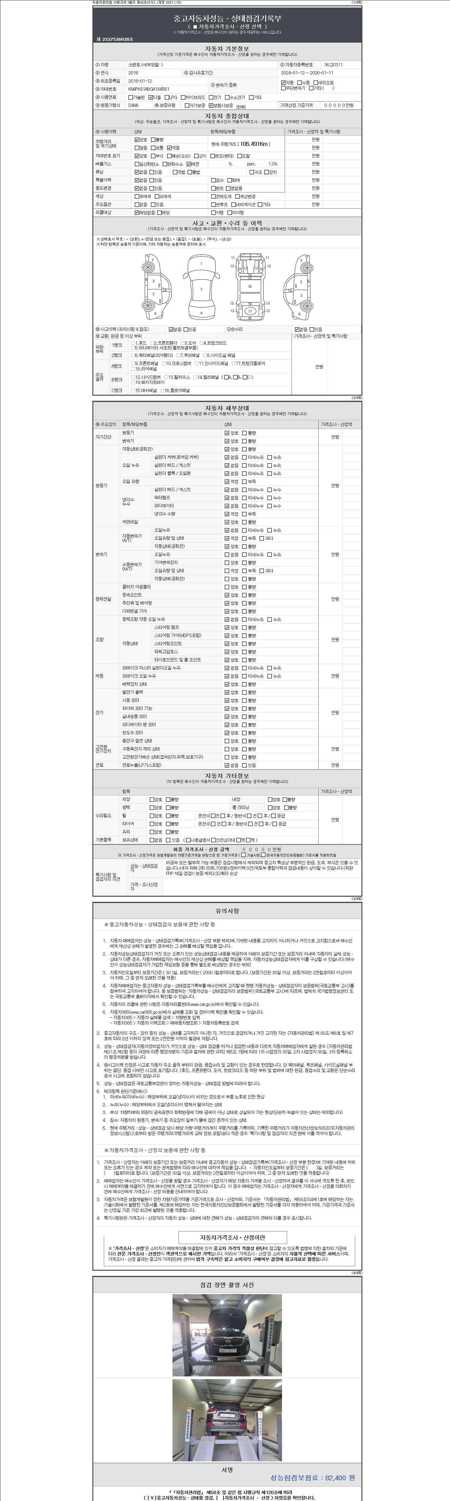 | 주행거리 | 106,491 km | 차량번호 | 36고0311 |