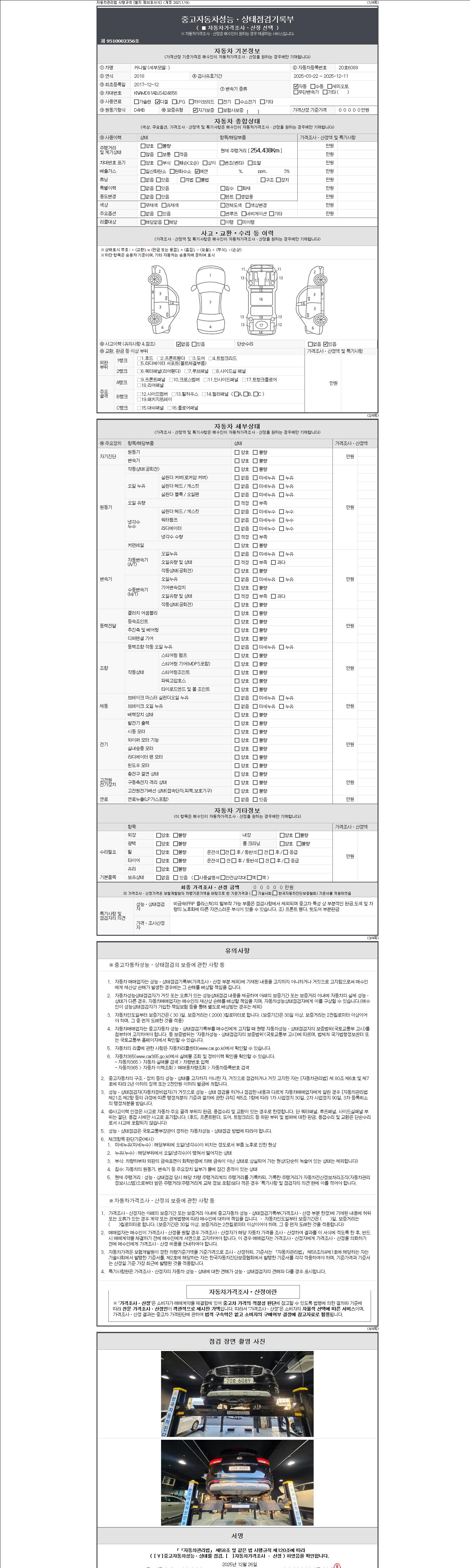 -중고자동차 매매업자를 통해 차량을 구입하실 경우 반드시 "중고자동차 성능, 상태점검 기록부"를 교뷰 받으셔야 하며, 매매업자는 반드시 의무 교부 하여야 압니다.
