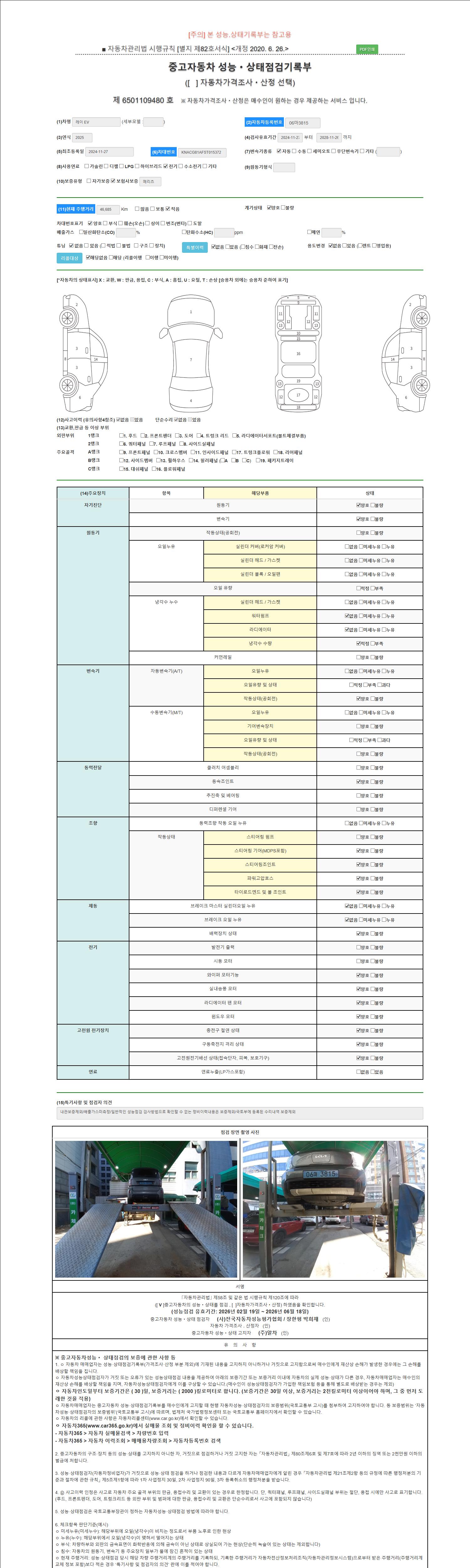 2. 차량 등록증이나 성능점검지 등을 상담자에게 요청및 확인하시고 사전에 미리 점검 하시기를 권유드립니다.