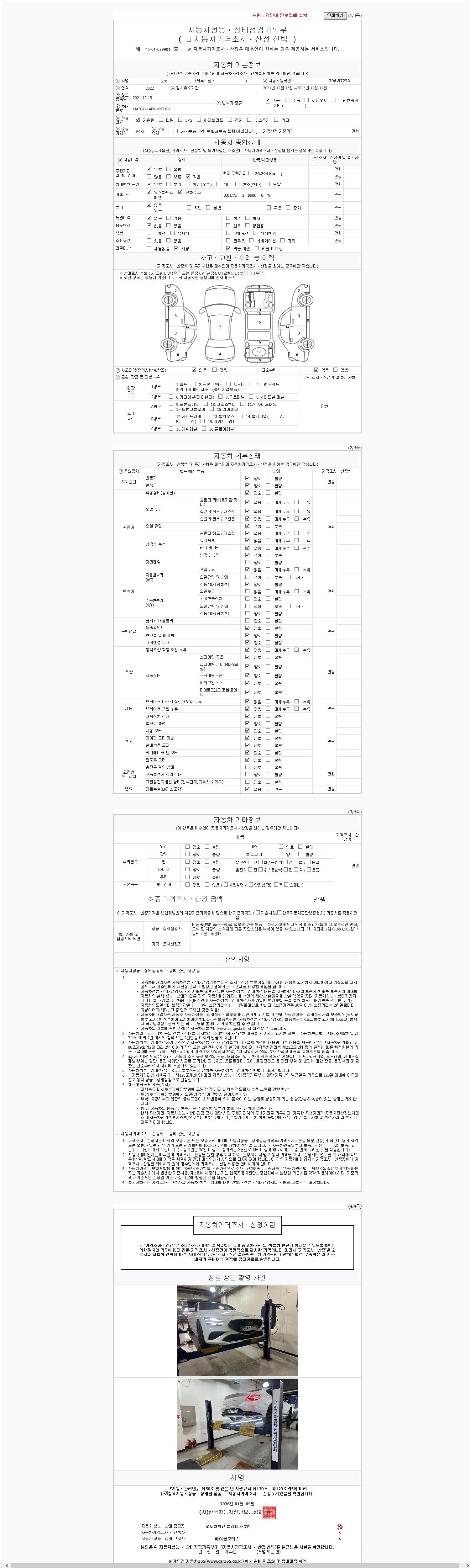 | 주행거리 | 26,294 km | 차량번호 | 396거7233 |