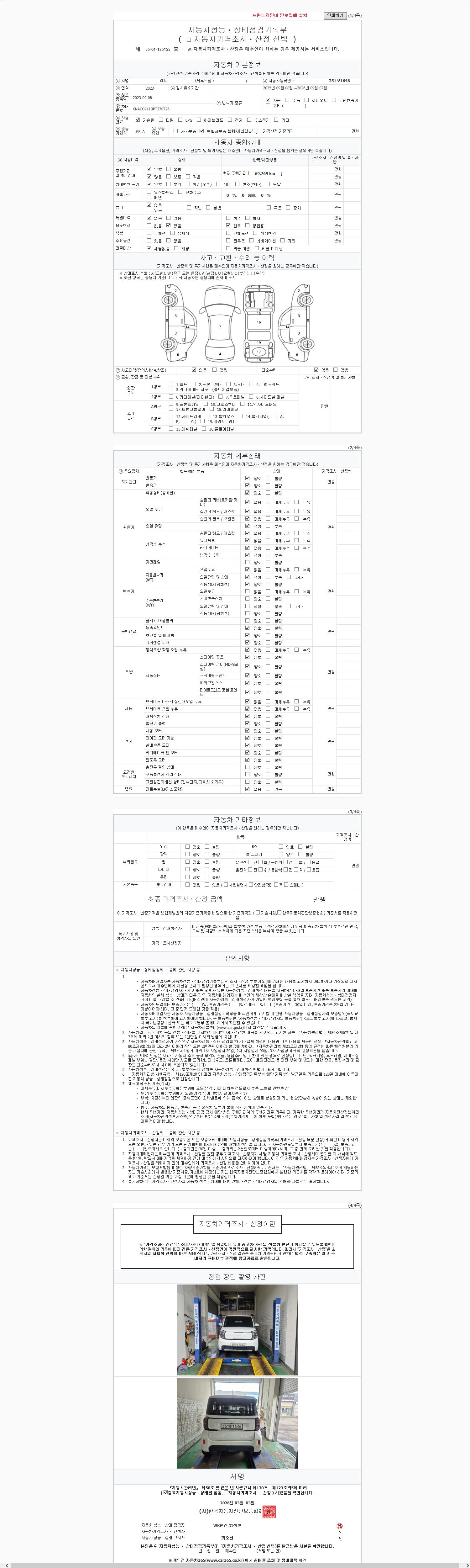 2. 차량 등록증이나 성능점검지 등을 상담자에게 요청및 확인하시고 사전에 미리 점검 하시기를 권유드립니다.