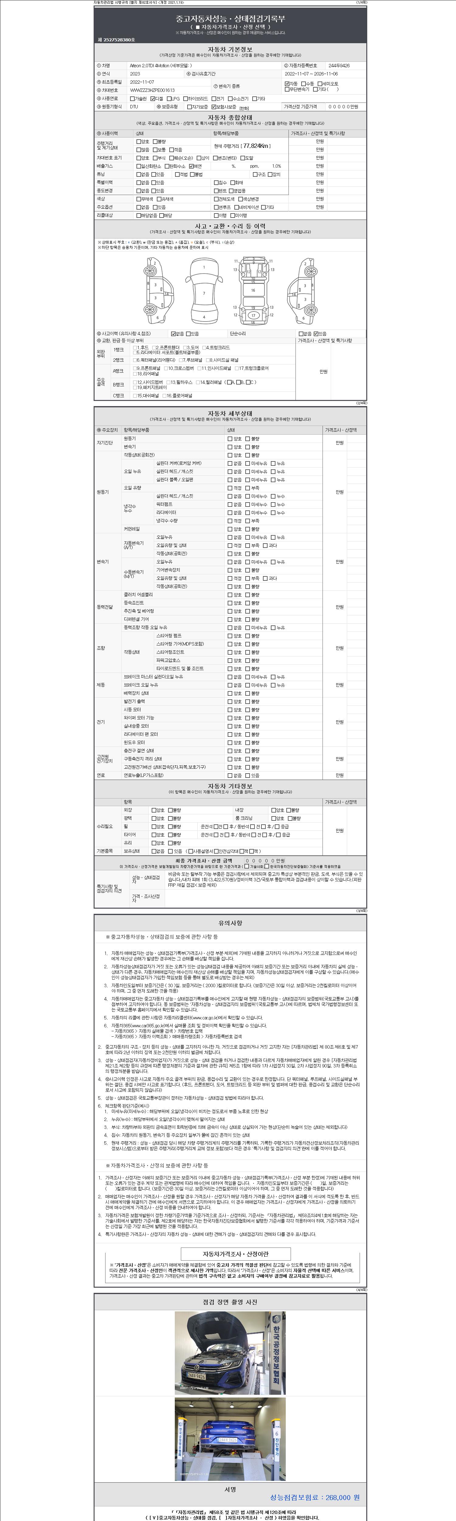 2. 차량 등록증이나 성능점검지 등을 상담자에게 요청및 확인하시고 사전에 미리 점검 하시기를 권유드립니다.