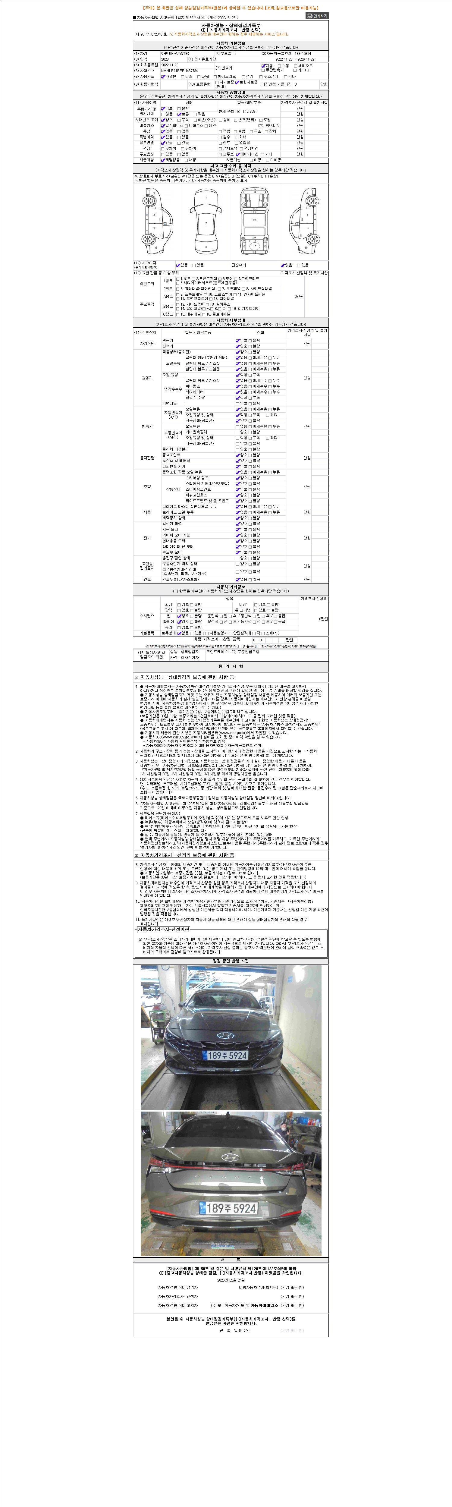 사고유무 성능기록부 참조 제시번호 제 2026022200 호