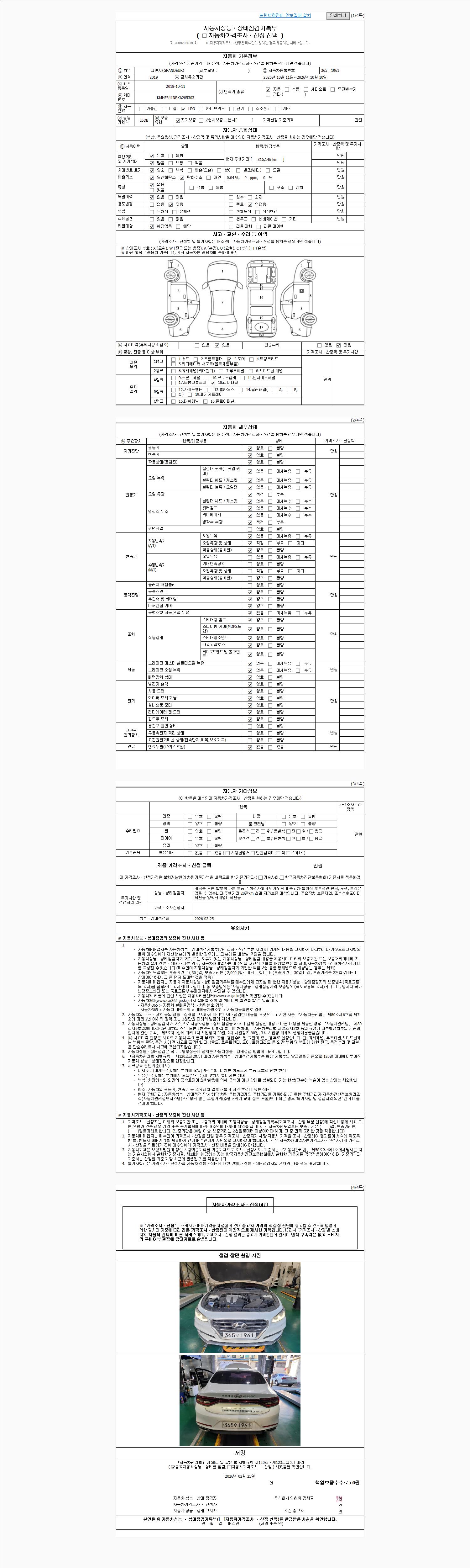 | 사고유무 | 성능기록부 참조 | 제시번호 | 제 2026003205 호 |