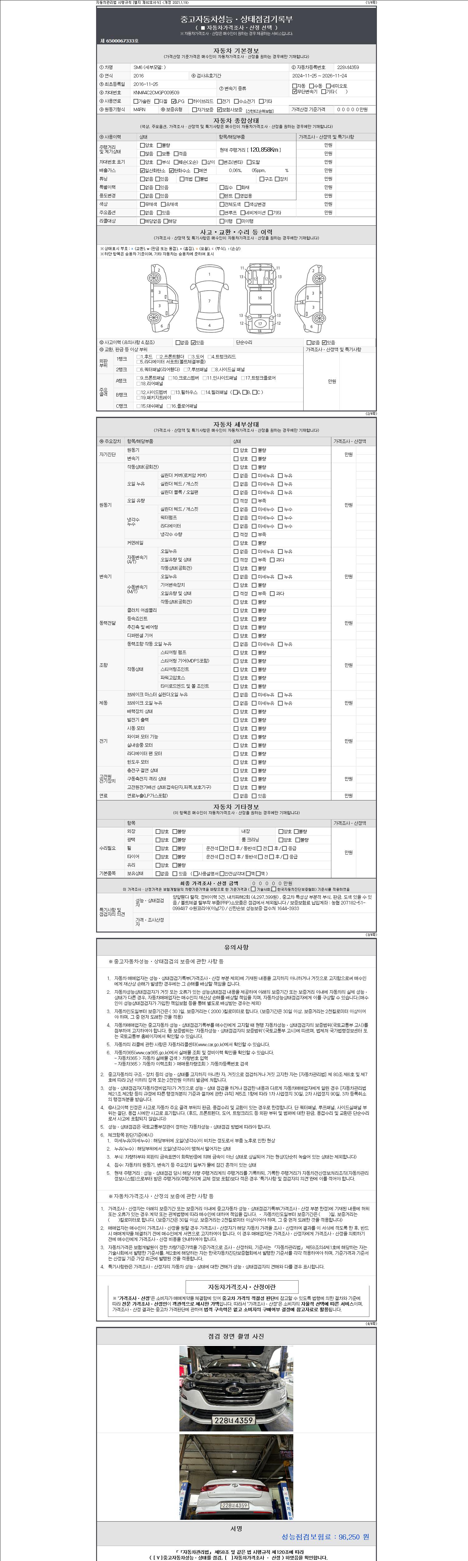 -중고자동차 매매업자를 통해 차량을 구입하실 경우 반드시 "중고자동차 성능, 상태점검 기록부"를 교뷰 받으셔야 하며, 매매업자는 반드시 의무 교부 하여야 압니다.