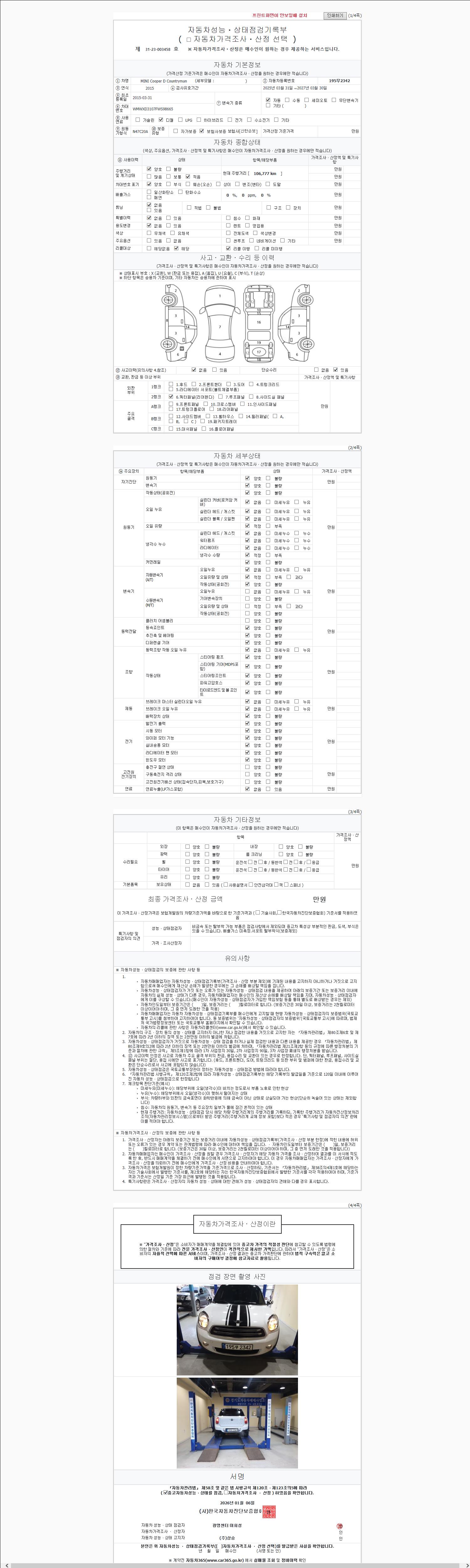 2. 차량 등록증이나 성능점검지 등을 상담자에게 요청및 확인하시고 사전에 미리 점검 하시기를 권유드립니다.