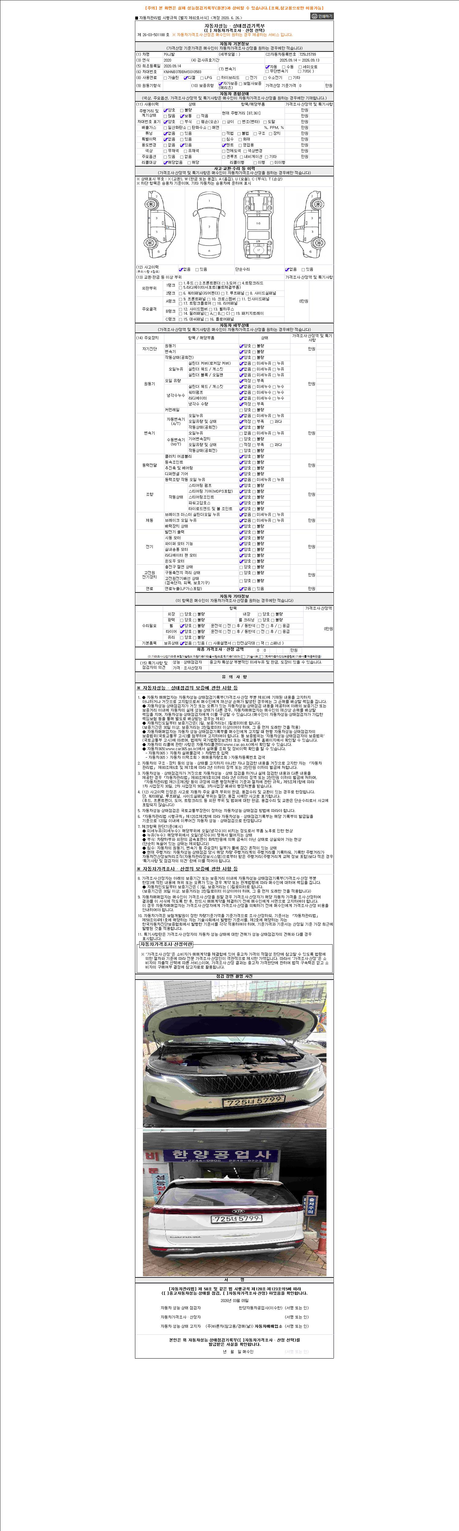 2. 차량 등록증이나 성능점검지 등을 상담자에게 요청및 확인하시고 사전에 미리 점검 하시기를 권유드립니다.
