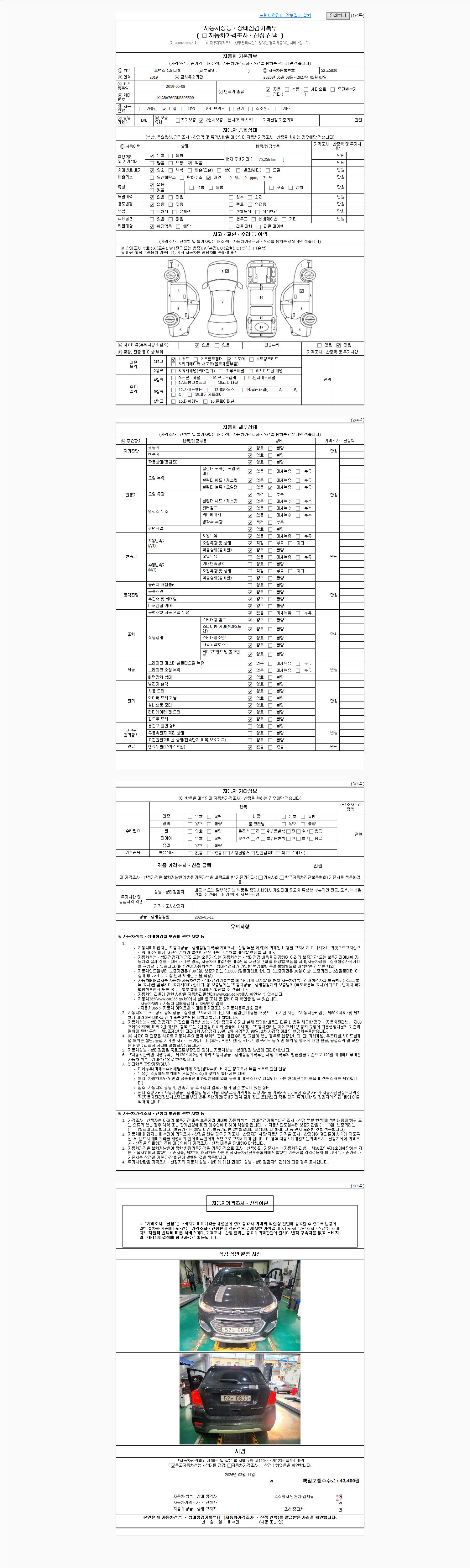 2. 차량 등록증이나 성능점검지 등을 상담자에게 요청및 확인하시고 사전에 미리 점검 하시기를 권유드립니다.