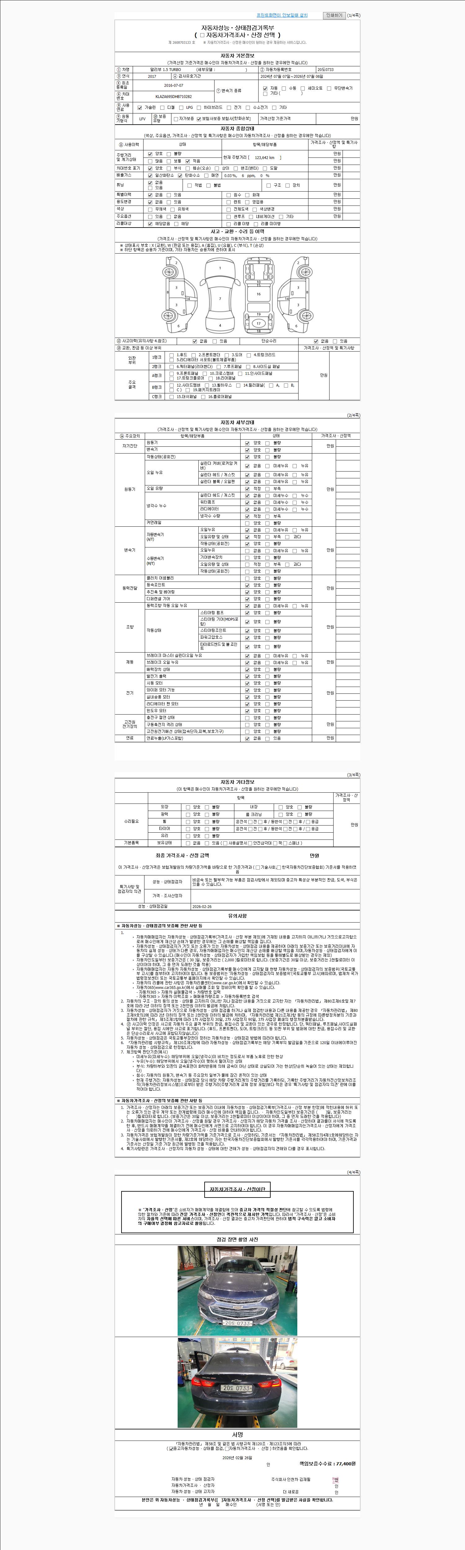 2. 차량 등록증이나 성능점검지 등을 상담자에게 요청및 확인하시고 사전에 미리 점검 하시기를 권유드립니다.