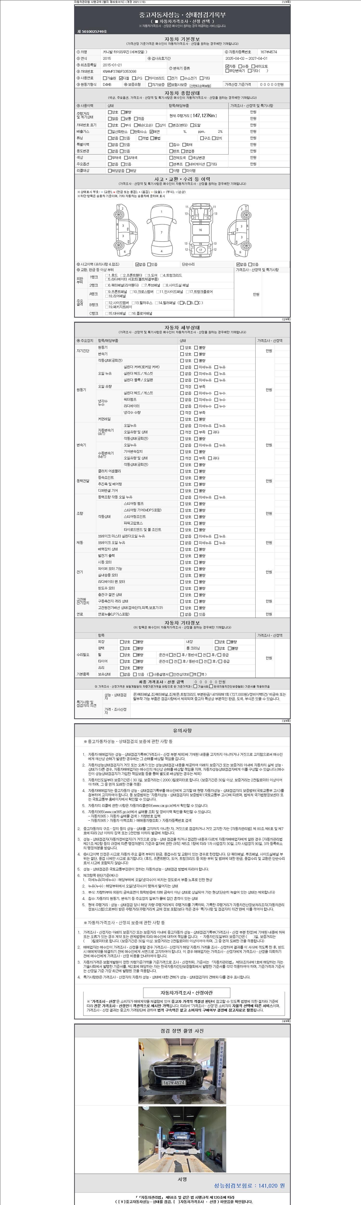 -중고자동차 매매업자를 통해 차량을 구입하실 경우 반드시 "중고자동차 성능, 상태점검 기록부"를 교뷰 받으셔야 하며, 매매업자는 반드시 의무 교부 하여야 압니다.
