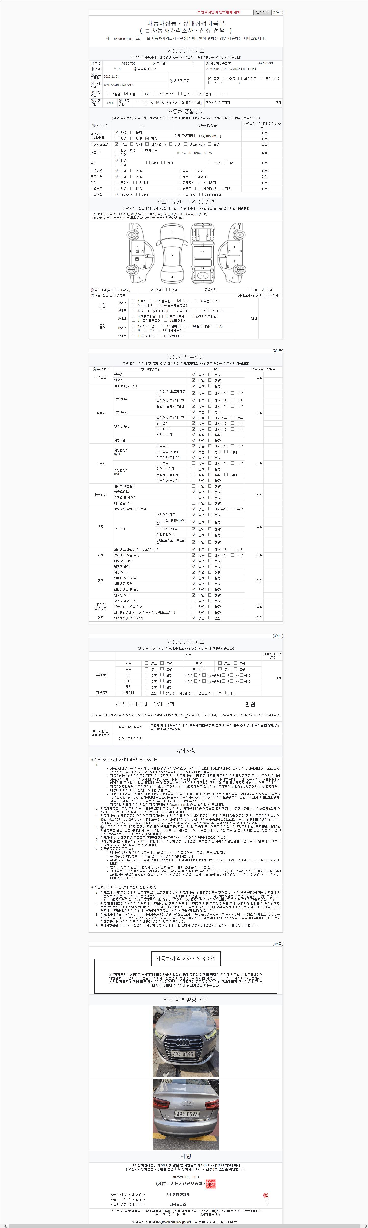 2. 차량 등록증이나 성능점검지 등을 상담자에게 요청및 확인하시고 사전에 미리 점검 하시기를 권유드립니다.