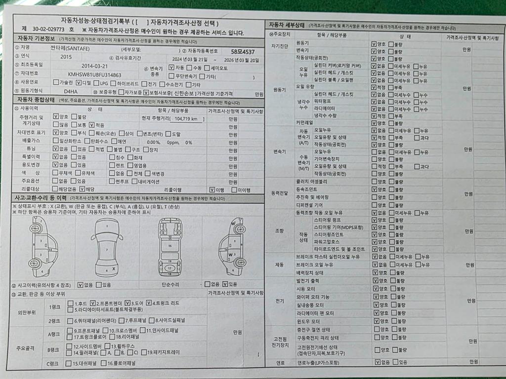 2. 차량 등록증이나 성능점검지 등을 상담자에게 요청및 확인하시고 사전에 미리 점검 하시기를 권유드립니다.