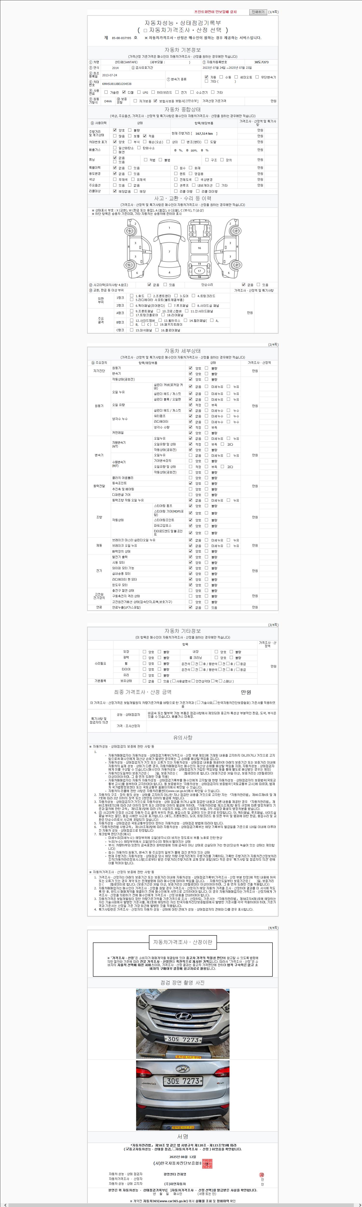| 주행거리 | 167,514 km | 차량번호 | 30도7273 |