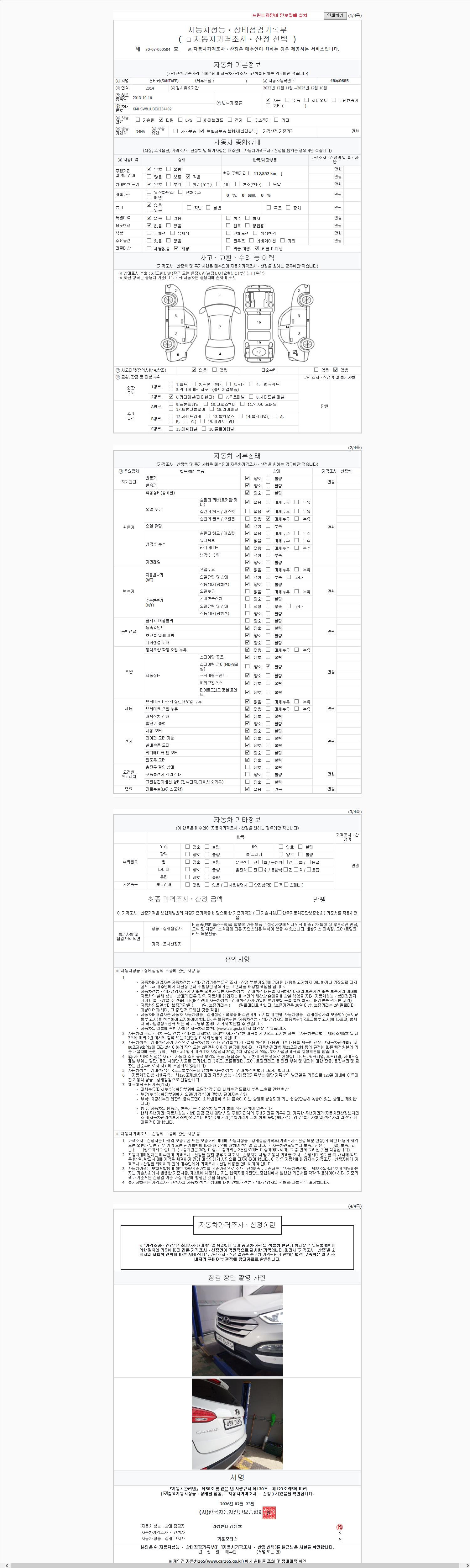 2. 차량 등록증이나 성능점검지 등을 상담자에게 요청및 확인하시고 사전에 미리 점검 하시기를 권유드립니다.