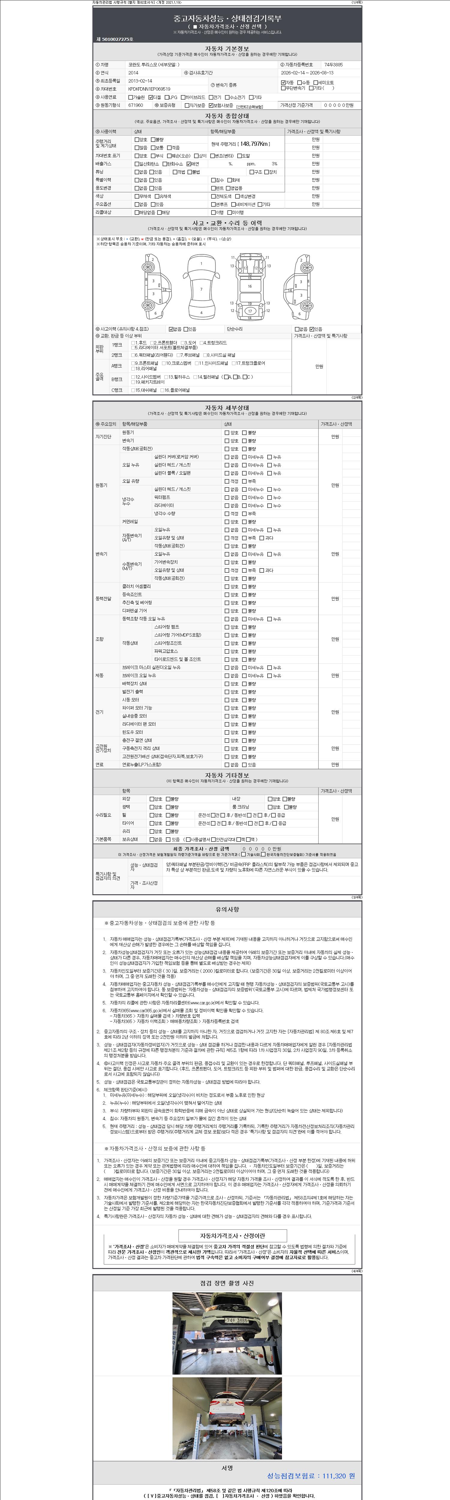 2. 차량 등록증이나 성능점검지 등을 상담자에게 요청및 확인하시고 사전에 미리 점검 하시기를 권유드립니다.