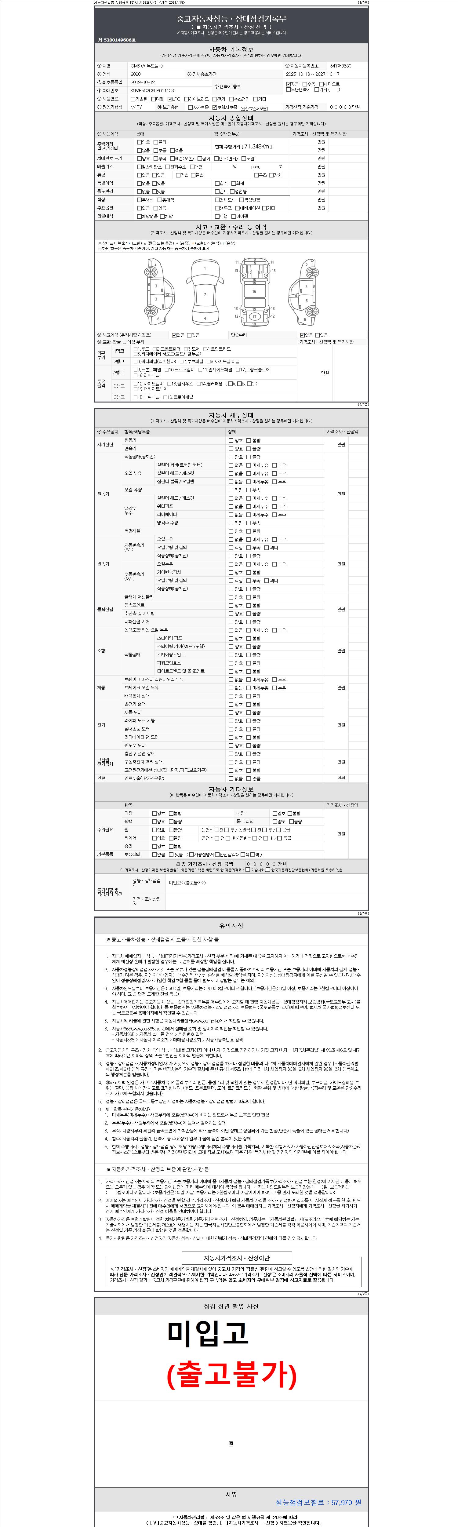 2. 차량 등록증이나 성능점검지 등을 상담자에게 요청및 확인하시고 사전에 미리 점검 하시기를 권유드립니다.