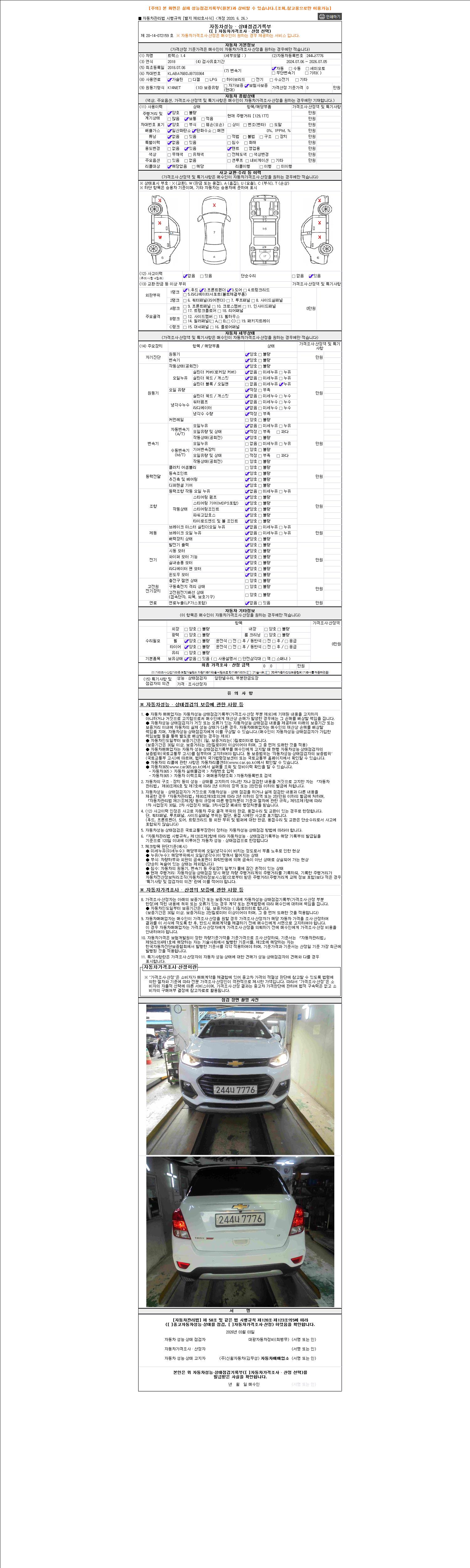 2. 차량 등록증이나 성능점검지 등을 상담자에게 요청및 확인하시고 사전에 미리 점검 하시기를 권유드립니다.