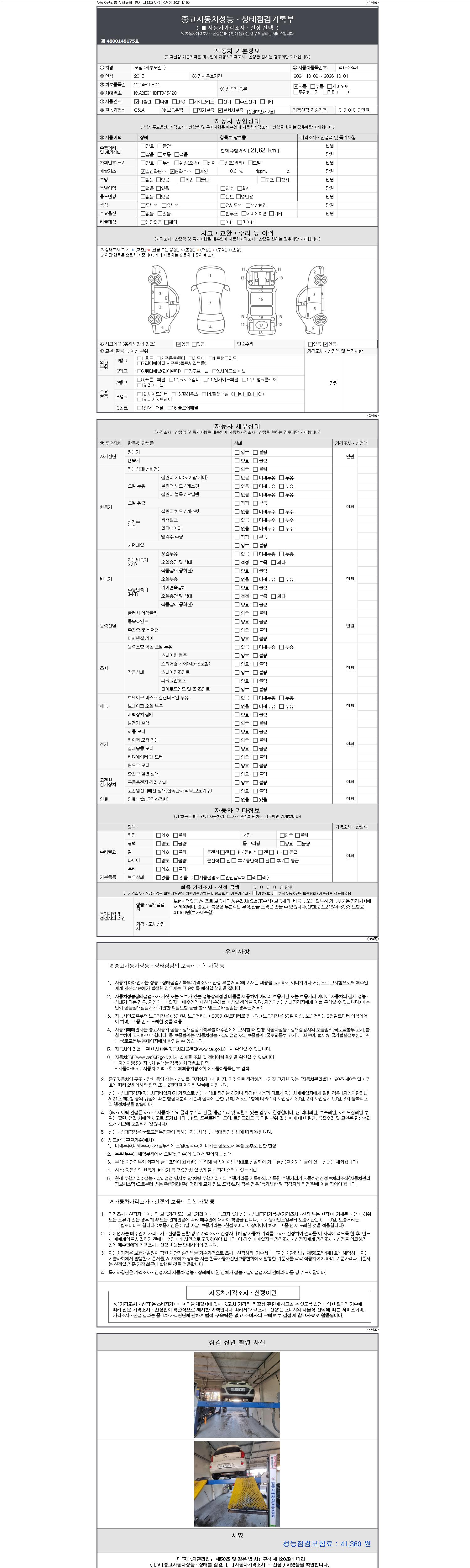 2. 차량 등록증이나 성능점검지 등을 상담자에게 요청및 확인하시고 사전에 미리 점검 하시기를 권유드립니다.