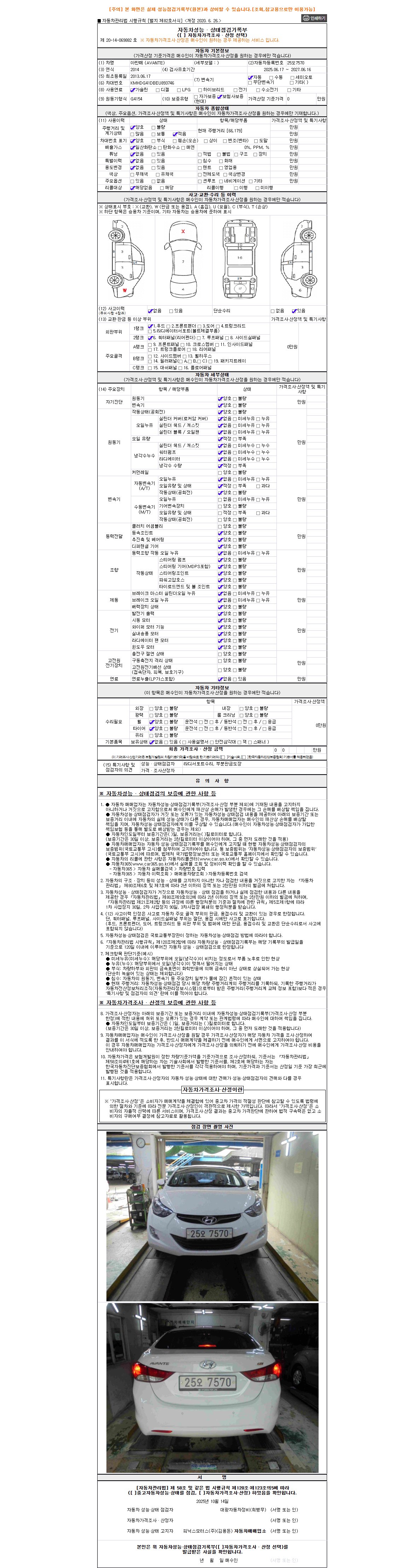 2. 차량 등록증이나 성능점검지 등을 상담자에게 요청및 확인하시고 사전에 미리 점검 하시기를 권유드립니다.